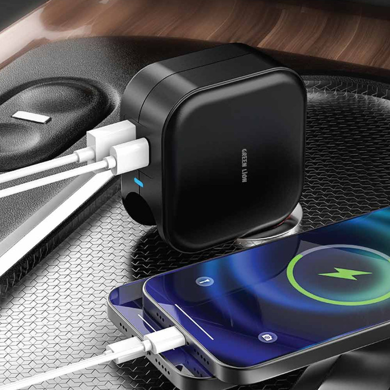 شارژر فندکی و دیواری 20 وات 2 پورت گرین لاین مدل GNDPWRCWCBK