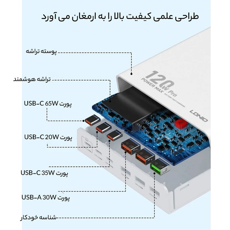 شارژر رومیزی 120وات الدینیو مدل HUB CHARGER Q605
