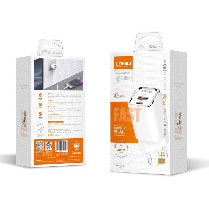 شارژر الدینیو A2317C با بهرهگیری از Turbo Power Engine، به صورت هوشمند ورودی مورد نیاز دستگاه شما را شناسایی کرده و سریعترین سرعت شارژ ممکن را ارائه میدهد. این ویژگی باعث میشود تا دستگاههای شما در کمترین زمان ممکن به صورت کامل شارژ شوند.