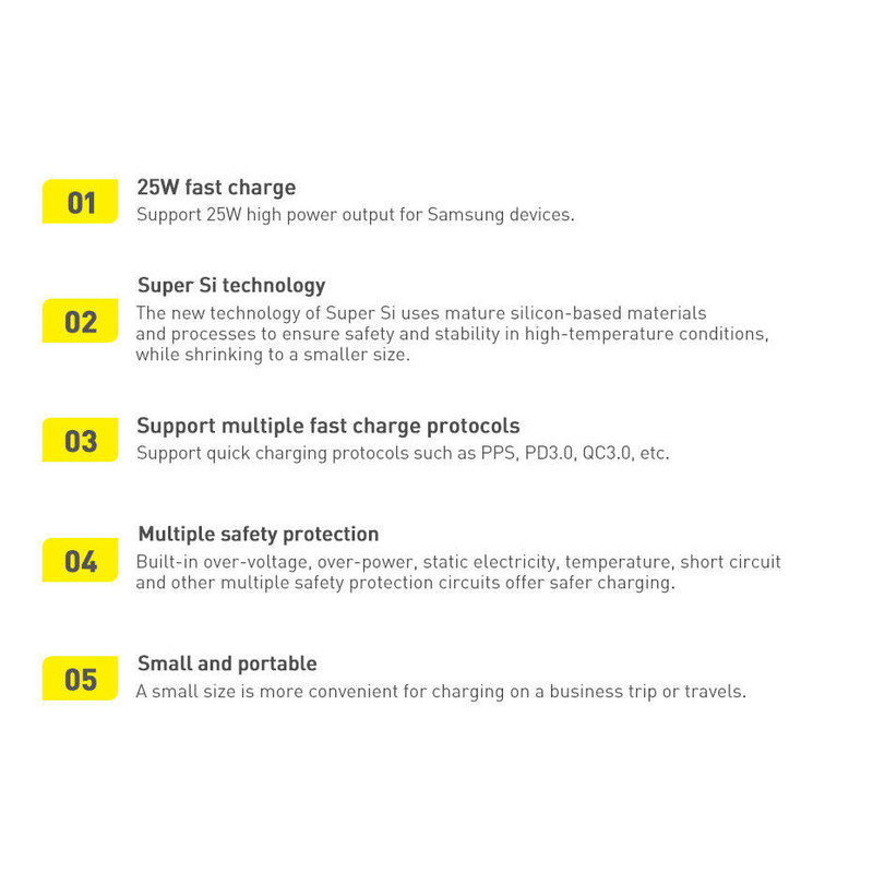 تکنولوژی Super Si در واقع یک متریال جدید بر پایه سیلیکون است که دارای تراکم و رسانایی حرارتی بهتری است و در چیپ این شارژر به کار رفته است. شارژرهای تولید شده با این تکنولوژی ابعاد به نسبت کوچکتری دارند، سریعتر هستند و در شرایط دمایی بالا مقاومت بیشتری خواهند داشت. همین امر سبب شده تا یک آداپتور 25 وات ساخته شده از فناوری Super Si اندازهای برابر با یک آداپتور شارژ 5W داشته باشد.
