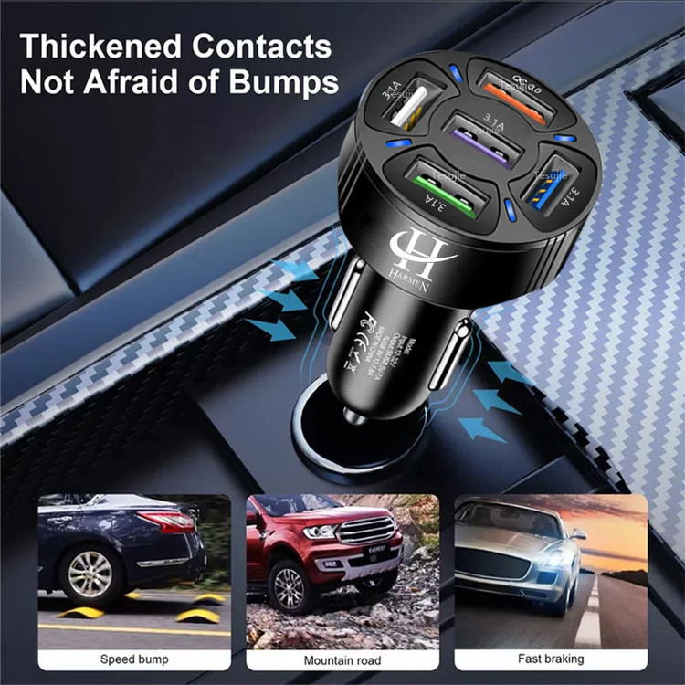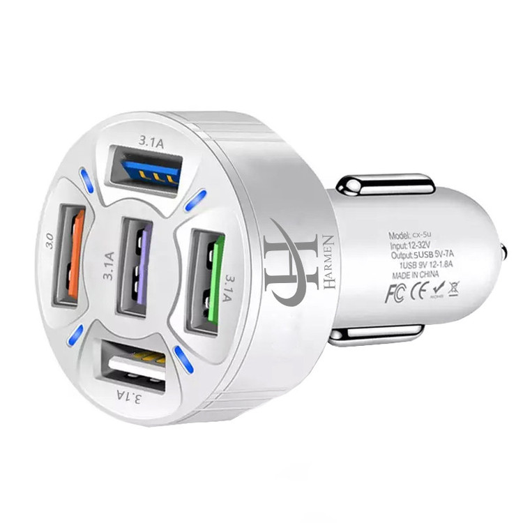 شارژر فندکی خودرو یکی از بهترین راهها برای شارژ کردن موبایل در خودرو است و در مسافتهای طولانی که قرار است با خودرو طی شود همراهیتان کرده و نگرانی اتمام شارژ موبایلتان را از بین میبرد.کمپانی هارمن هم برای این منظور محصولی را با عنوان تجاری HARMEN CX-5U راهی بازار کرده که با هم به شرح ویژگی آن میپردازیم.در مسافرتهای دسته جمعی یکی از دغدغههای سرنشینان خودرو تمام شدن شارژر موبایلشان و نبود شارژر کافی برای شارژر آن است. اما کمپانی هارمن با طراحی بینظیر این محصول و در اختیار قرار دادن 5 پورت در دسترس شما، این دغدغه را رفع کرده و امکان شارژ همزمان چند دستگاه را برایتان فراهم کرده است.5 پورت روی بدنه شارژر فندکی طراحی شده که سرنشینان صندلی عقب خودرو هم به راحتی میتوانند از آن استفاده کنند. شدت جریان این محصول هارمن 5V/6.2A بوده و ورودی آن برابر با 12-24V است و در صورت استفاده همزمان از پورتها این جریان تقسیم شده و سرعت شارژ کاهش مییابد. مثلا هنگام استفاده از دو پورت خروجی هر کدام برابر با 5V/3.1A خواهد شد. در ضمن از پروتکل شارژ سریع QC3.0 پیروی میکند.برای جلوگیری از شارژ بیش از حد هم، به صورت هوشمند گوشی شما را شناسایی کرده و شارژ سازگار با آن را توزیع میکند.پلاستیک ABS و پلیکربنات نسوز PC Fireproof Material, ABS, ABS + Metal موادی هستند که استقامت شارژ فندکی فست شارژ خودرو را در برابر آسیب و حرارت تضمین نموده و کیفیتی عالی را ارائه میدهند. طراحی ساده این محصول همه پسند میباشد شدت جریان خروجی این شارژر Dc9V-12V- 2.0A 5.OV-3.1A و قابلیت استفاده برای تمامی برندهای موبایل از جمله اپل ایفون و سامسونگ و شیائومی و سونی همه مدل ها و سازگار با برق خودروهای سواری اتوبوس و کامیون میباشد