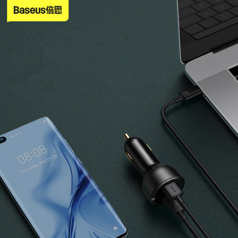 روی بدنه شارژ فندکی Baseus CCZX-100C یک پورت Type C و یک پورت USB قرار دارد که میتوانید به طور همزمان از یکی برای شارژ لپ تاپ و از دیگری برای شارژ گوشی استفاده کنید.