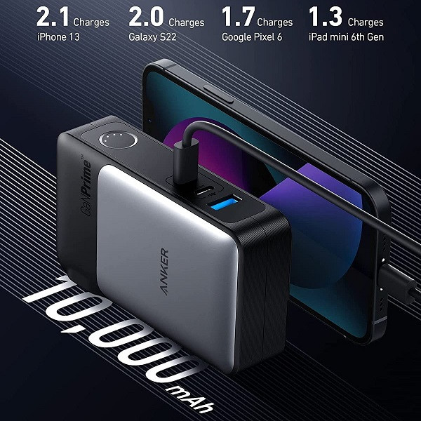 شارژر 2 در 1: با یک شارژر دیواری هیبریدی 65 واتی و یک شارژر قابل حمل 10000 میلی آمپر ساعتی از بهترین های هر دو دنیا لذت ببرید. Power for 3: با 2 پورت USB-C و 1 پورت USB-A، می توانید به راحتی حداکثر 3 دستگاه را همزمان شارژ کنید. پشتیبانی شده توسط GaNPrime™: شارژر قابل حمل به پیشرفته ترین سیستم شارژ Anker مجهز به انرژی GaN، طراحی جمع و جور مبتکرانه، PowerIQ™ 3.0 برای کارایی بالاتر و ActiveShield™ 2.0 برای نظارت هوشمند دما مجهز شده است. سازگاری گسترده: با طیف وسیعی از دستگاهها از جمله تلفن، تبلت، لپتاپ و غیره بینقص کار میکند.