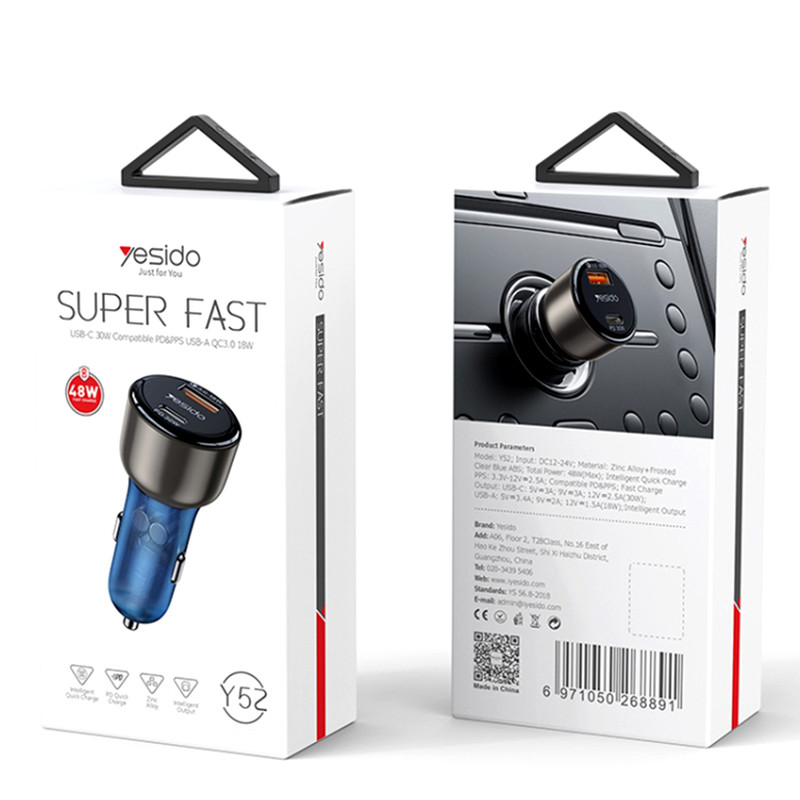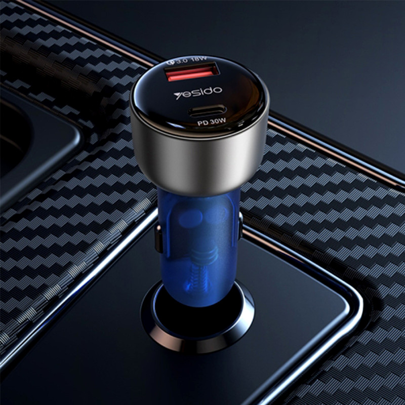 مدل «Y52» از سری شارژرهای اتومبیل «Yesido» با توان 38 وات طراحی و تولید شده است. با کمک این شارژر میتوانید باتری دو تلفن ، تبلت یا لپ تاپ خود را با بیشترین سرعت و تا چند برابر سریعتر از شارژر های معمولی شارژ کرده و در وقتتان صرفهجویی کنید. روی بدنه این شارژر، دو درگاه خروجی USB-A و USB-C وجود دارد. شدت جریان ورودی این شارژر برای 18 USB-A وات و برای USB-C 30 وات بوده و شدت جریان خروجی آن 5 / 9 / 12 ولت است. این محصول تنها 43 گرم وزن دارد. برای استفاده از این شارژر اتومبیل، کافی است آن را بطور مستقیم به درگاه فندک داخل ماشین وصل کرده و سپس دستگاه موردنظرتان را با استفاده از یک کابل USB-A و یا USB-C به شارژر متصل کنید. «Y52» دارای تکنولوژی Quick Charge 3.0 و فناوری PD USB-C برای ارائه بهترین شارژ برای هر دستگاه است. اگر به دنبال یک شارژر اتومبیل باکیفیت همراه با طراحی زیبا، فشرده، باریک و جمعوجور هستید که با استفاده از آن امکان شارژ باتری دو دستگاه مختلف را به طور همزمان داشته باشید، این مدل از شارژرهای یسیدو انتخاب بسیار مناسبی خواهد بود.
