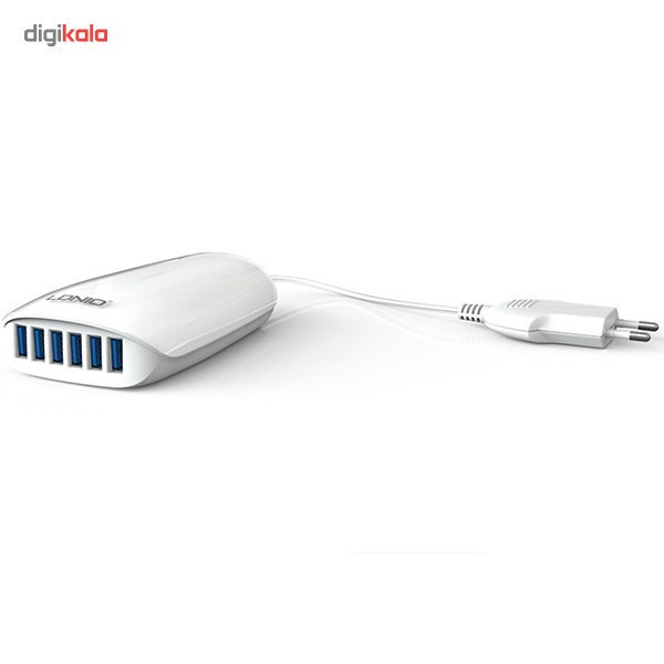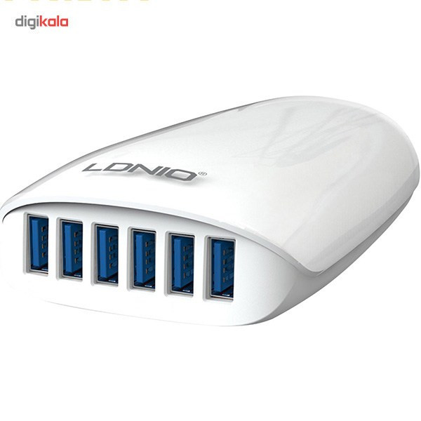 با استفاده از این شارژر رومیزی، شش دستگاه مختلف را بهطور همزمان به آن متصل کرده و باتری آنها را شارژ کنید. در مدل «A6573» از شارژرهای رومیزی «الدینیو» از یک کابل برق به طول 150 سانتیمتر بهره گرفته شده که قابلیت جدا شدن را دارد. برای استفاده از این محصول کافی است کابل برق را به شارژر متصل کرده و آن را به یک پریز برق متصل کنید؛ در این حالت جریان برق درون شارژر جریان پیدا میکند. حالا میتوانید گوشی موبایل، تبلت و یا هر دستگاه دیگری که قابلیت سازگاری با شدت جریان خروجی شارژر را داشته باشد، با استفاده از یک کابل USB به آن متصل کرده تا باتری دستگاه شارژ شود. روی بدنهی این محصول شش درگاه خروجی USB 3.0 وجود دارد. شدت جریان خروجی در دو درگاه این محصول 2 آمپر، در دو درگاه خروجی دیگر آن 2.4 آمپر و در دو درگاه آخر 1 آمپر است. همچنین حداکثر شدت جریان خروجی در هر 6 درگاه این محصول 5.4 آمپر خواهد بود. در زمان استفاده از انواع شارژرها باید به شدت جریان خروجی در آنها و دستگاهی که قرار است باتری آن را شارژ کنید، توجه داشته باشید. بهطور مثال برای شارژ شدن باتری انواع گوشیهای موبایل باید یک شارژر با حداقل شدت جریان خروجی 1 آمپر داشته باشید. این در حالی است که برای شارژ شدن باتری تبلتها باید از یک شارژر با حداقل شدت جریان خروجی 2 آمپر استفاده کرد. ولتاژ ورودی در این محصول 100 تا 240 ولت و ولتاژ خروجی در آن 5 ولت است. این محصول 400 گرم دارد و ظاهر آن شبیه به یک مستطیل با ضلعهای منحنی و طول 121.2 میلیمتر، عرض 75 و ارتفاع 33.8 میلیمتر طراحی شده است.
