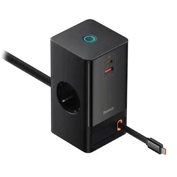 شارژر رومیزی بیسوس مدل 65W Built-In Retractable Cable PowerCombo Tower PowerStrip یک پاوراستریپ هوشمند و کاربردی است که امکان شارژ همزمان چند دستگاه را با سرعت بالا فراهم میکند. این محصول علاوهبر یک پورت USB-C ثابت، دارای کابل Type-C یکمتری جمعشونده روی بدنه و یک پورت USB معمولی است و همچنین دو پریز برق برای اتصال لوازم برقی دیگر ارائه میدهد.