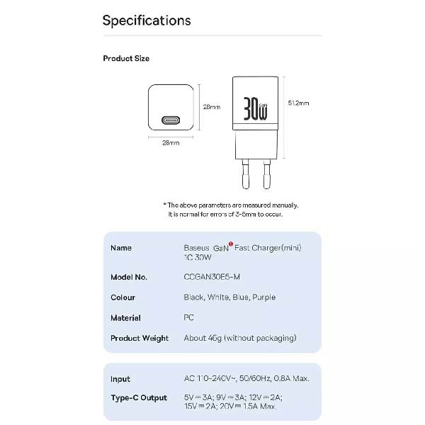 شارژر دیواری 30W بیسوس مدل CCGN070401
