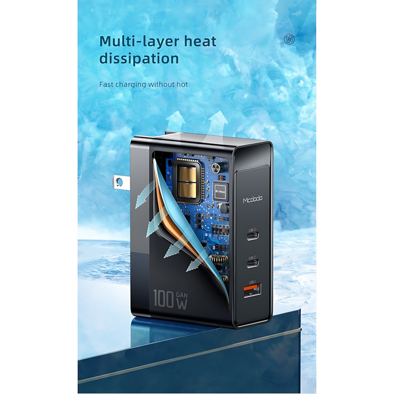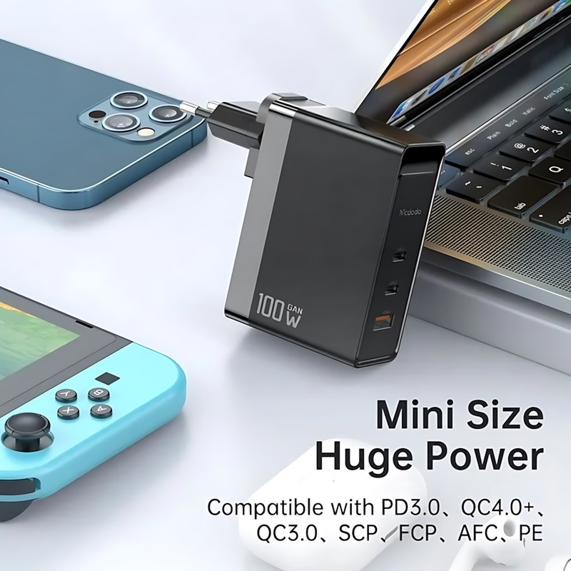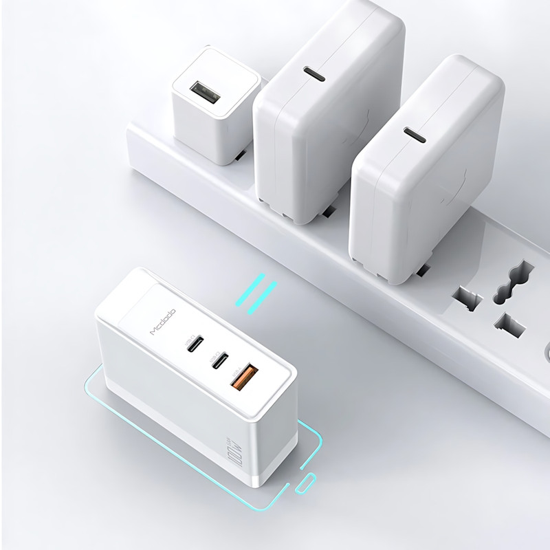 شارژر دیواری 100W مک دودو مدل CH-8105 Pro، یک شاهکار قدرتمند و هوشمند که شارژ دستگاههای شما را با سرعت و کارایی بیمانند به سطحی جدید میرساند. این شارژر با بدنهای از پلیکربنات ضدحریق (Fireproof PC) و فناوری پیشرفته GaN5 Pro، در ابعاد 30×73×110 میلیمتر و وزن 250 گرم، طراحی شده است. سه پورت خروجی شامل دو پورت Type-C و یک پورت USB-A، امکان شارژ همزمان چند دستگاه را فراهم میکند و با توان کلی 100 وات، شارژ سریع و ایمن را تضمین میکند. CH-8105 Pro با ورودی 100-240V (50/60Hz، 1.5A) و خروجیهای متنوع (Type-C1/C2 تا 100W، USB-A تا 30W، و ترکیبهایی مانند 65W+30W یا 60W+20W+22.5W)، از پروتکلهای شارژ سریع QC، FCP، SCP و Apple 2.4A پشتیبانی میکند. این شارژر با گوشیهای هوشمند، تبلتها، لپتاپها، نوتبوکها و هندزفریها سازگار است. فناوری GaN، حجم کوچک و توان بالای شارژ را تضمین میکند، در حالی که دوشاخههای UK و EU، استفاده جهانی را ممکن میسازد. این شارژر با طراحی کاربردی و کیفیت ساخت برتر، انتخابی ایدهآل برای کسانی است که به شارژ سریع و چندمنظوره نیاز دارند. اگر به دنبال شارژری هستید که توان بالا، سازگاری گسترده و فناوری پیشرفته را در کنار هم ارائه دهد، CH-8105 Pro انتخابی است که تجربه شارژ شما را متحول میکند؛ محصولی که کیفیت، کارایی و نوآوری برند مک دودو را با قدرت هرچه تمامتر به نمایش میگذارد و هر کاربری را با سرعت، دوام و طراحیاش شگفتزده میکند.