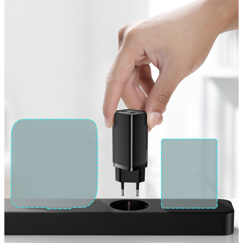 این درگاهها دارای پروتکل PD نیز میباشد و به شماره اجازه خروجی گرفتن با توان بیشتر از 18w به وسیله پورت های Type-C می دهد بنابراین شما میتوانید تبلت و لپ تاپ خود را نیز با آن شارژ کنید. مهم تر از همه اینکه کلگی شارژر فست شارژ Baseus GAN 2 LITE با تمام پروتکل های شارژ سریع همچون QC4 +، PD3.0، QC3.0، SCP و AFC سازگار است. GAN 2 LITE در واقع خلاصه شدهی Gallium Nitride یا گالیوم نیترید است که یکی از مواد نیمه رسانای جدید محسوب میشود. از جمله ویژگیهای این ماده میتوان به پهنای باند بالا، رسانایی گرمایی زیاد، مقاومت گرمایی زیاد، مقاوم تابشی، مقاومت در برابر اسید و قدرت و استحکام بالا اشاره کرد. شارژر فست شارژ باسئوس GAN 2 LITE با بهرهگیری از این تکنولوژی در عین اینکه ابعاد کوچکی دارد بسیار قوی عمل میکند و قادر است سه وسیله مختلف مثل گوشی موبایل و لپ تاپ شما را به طور همزمان شارژ کند. بیسوس این تکنولوژی را به نام BCT یا Baseus Cooling Technology (سیستم خنک کننده بیسوس) یاد می کند.