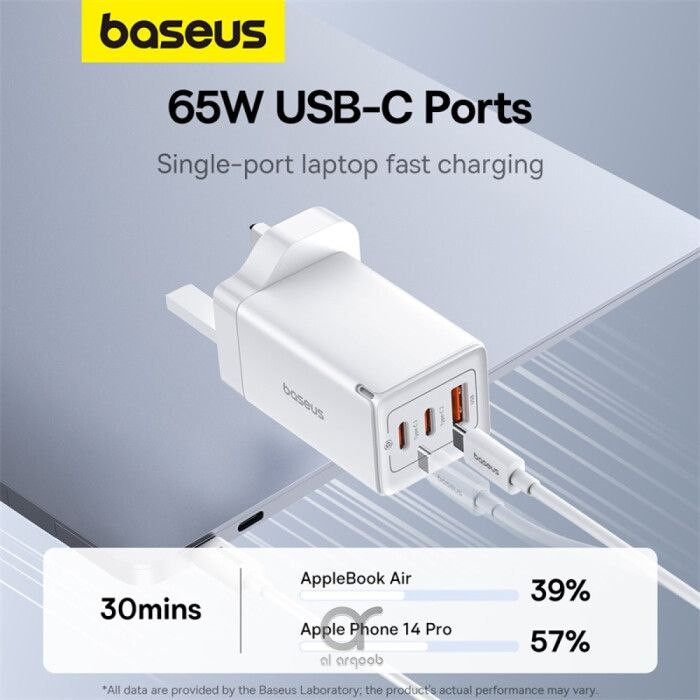 توان خروجی 65 وات: این شارژر حداکثر توان خروجی 65 وات را ارائه می دهد که آن را برای شارژ طیف گسترده ای از دستگاه ها از جمله گوشی های هوشمند، تبلت ها، لپ تاپ ها و غیره مناسب می کند.