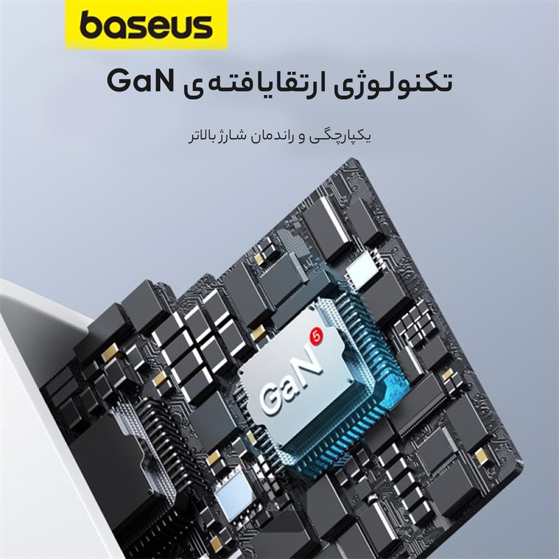 فناوری GaN: این شارژر همچنین از فناوری نیترید گالیوم (GaN) بهره میبرد که تبدیل انرژی کارآمد را ممکن میسازد و طراحی فشردهتری را در مقایسه با شارژرهای سنتی ایجاد میکند.