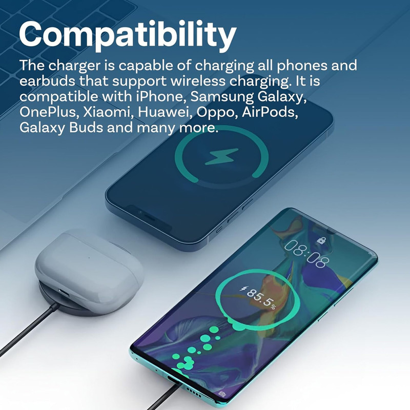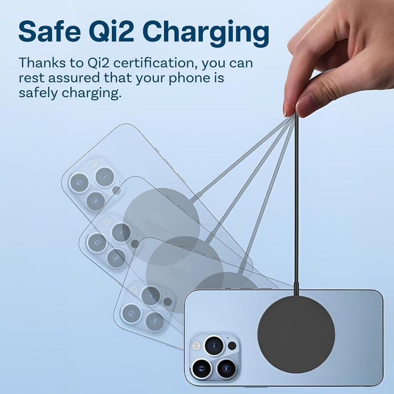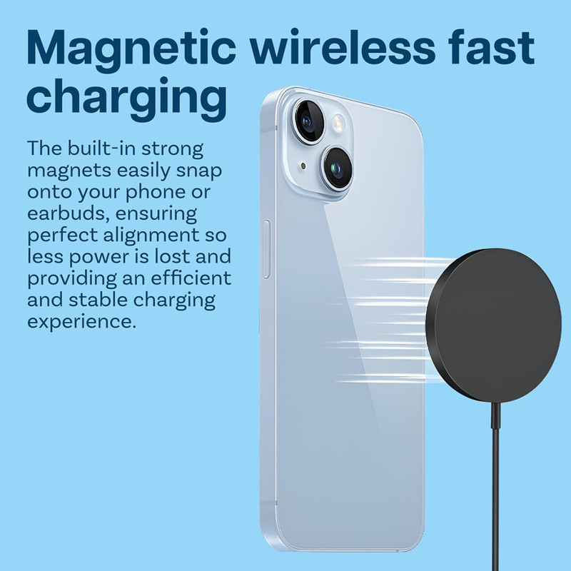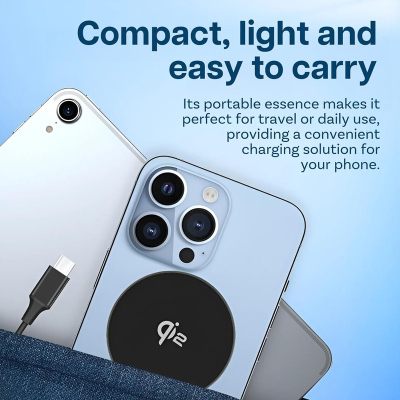 شارژر وایرلس Baseus Simple Mini4 Air با بهکارگیری آهنرباهای قدرتمند داخلی، اتصال دقیق و بدون لغزش میان شارژر و گوشی را فراهم میکند. این طراحی مغناطیسی باعث میشود دستگاه شما همیشه در بهترین نقطه القای انرژی قرار گیرد تا بیشترین بازده شارژ حاصل شود. به لطف پشتیبانی کامل از استاندارد MagSafe، کاربران سری آیفون 12 تا 16 میتوانند گوشی خود را تنها با یک حرکت ساده روی پد قرار دهند تا فرآیند شارژ بلافاصله آغاز شود. حتی در زمان استفاده از گوشی هنگام شارژ – مثل تماشای ویدیو یا پاسخ به تماس – میدان مغناطیسی پایدار از جدا شدن تصادفی دستگاه جلوگیری میکند. برای سایر گوشیهای دارای فناوری Qi نیز حلقه فلزی مخصوص در نظر گرفته شده تا تجربه شارژ مغناطیسی بدون نیاز به کابل برای همه کاربران فراهم باشد.