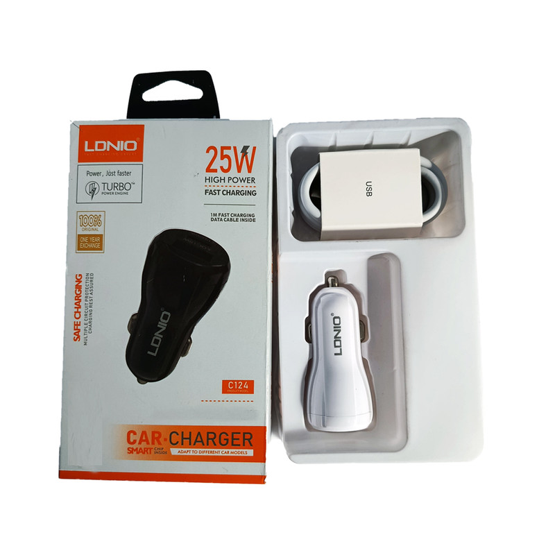 شارژر فندکی 25 وات 2 پورت الدینیو مدل C-124 به همراه کابل تایپ سی