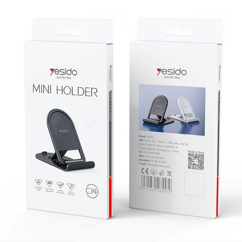 متریال استفاده شده در طراحی بدنه این هولدر رومیزی تاشو یسیدو YESIDO C141 از پلاستیک باکیفیت ABS ساخته شده. به سبب طراحی بینظیر و تاشو این محصول شما میتوانید همیشه ان را در کیف،کوله خود به همراه داشته باشید.نگران لغزش استند برروی میز نباشید چراکه قسمت های کف هولدر توسط سیلیکون های کوچک پوشانده شده تا روی میز سر نخورد. علاوه براین شما میتوانید پایه پشتی هولدر را در زاویه دلخواه خود بنابر بهترین زاویه دید تنظیم نمایید.در قسمت پشتی هولدر 4 محل تعبیه شده که شما میتوانید پایه تاشو پشتی را در یکی از 4 محل قرار دهید.