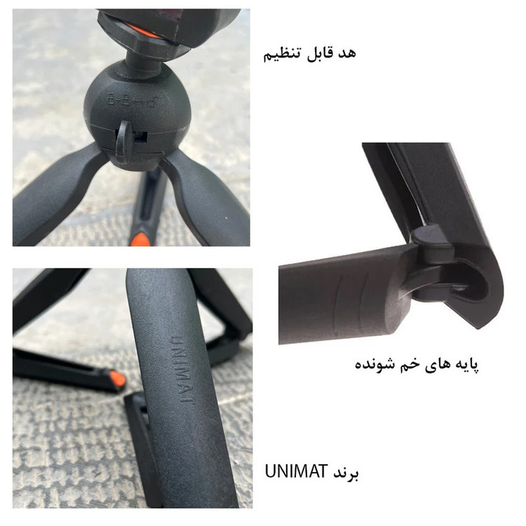 گوشی های با عرض حداقل 54 میلیمتر و حداکثر 88 میلیمتر | دوربین عکاسی تا 1.5 کیلوگرم | پایه مونوپاد تا 1.5 کیلوگرم
