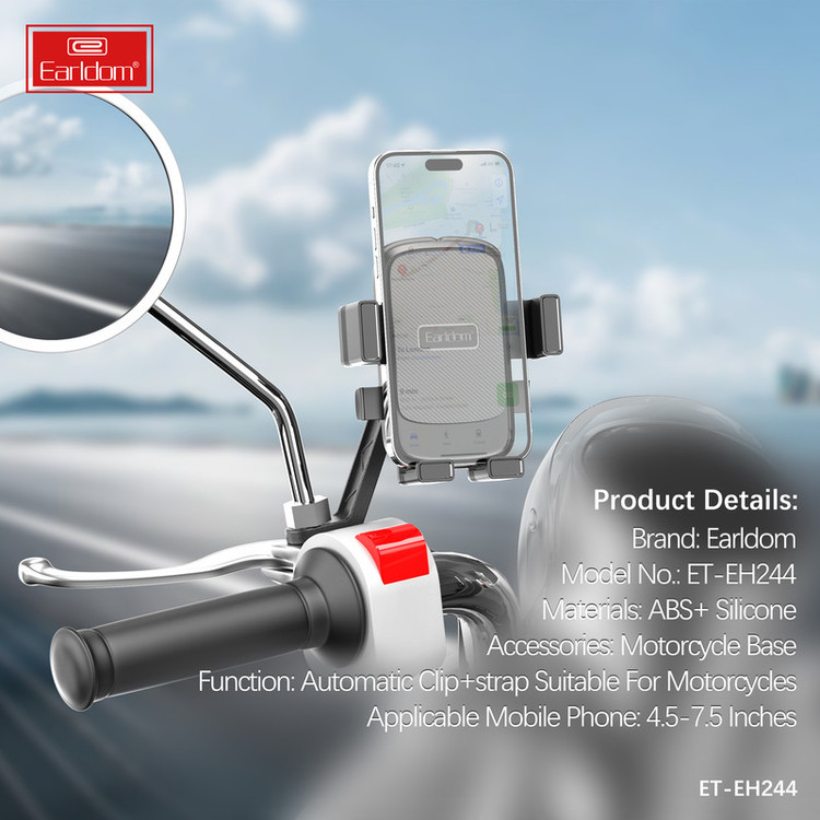 هولدر موتورسیکلت ارلدام مدل EH244 با طراحی حرفهای و مقاوم، امنیت و ثبات کامل را برای گوشی شما در هنگام رانندگی فراهم میکند. این هولدر مناسب انواع موتورسیکلتهاست و از گوشیهای ۴.۵ تا ۷.۵ اینچ پشتیبانی میکند.