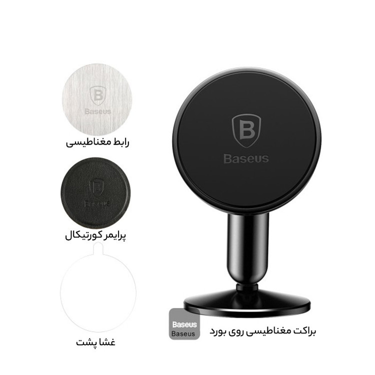 دارای پایه 3 سانتی متری.چرخش 360 درجه.دارای چسب قوی برای داشبورد و میز محل کار.بدنه فلزی.