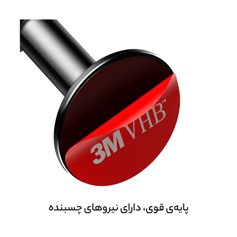 دارای پایه 3 سانتی متری.چرخش 360 درجه.دارای چسب قوی برای داشبورد و میز محل کار.بدنه فلزی.