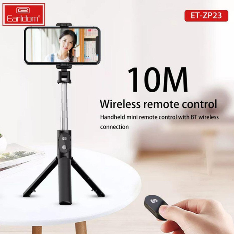 دارای ریموت کنترل کوچک لمسی با برد 10 متر، بازوی تلسکوپی، کلید شاتر، زاویه گردش 180 درجه، جنس بدنه ABS نسخه بلوتوث 4.0 ظرفیت باتری 70mAh
