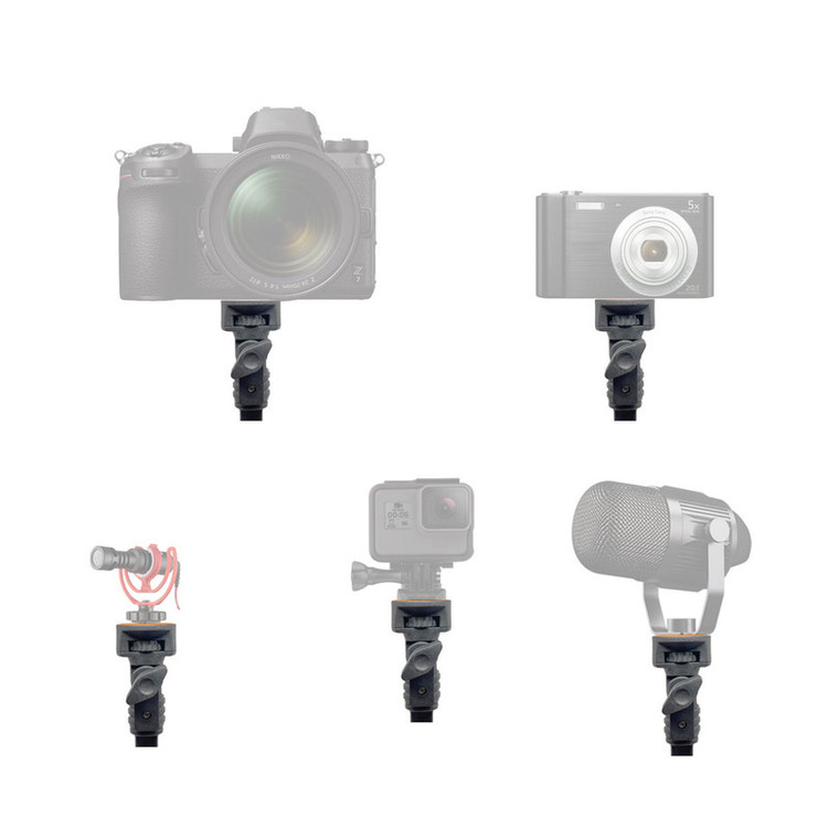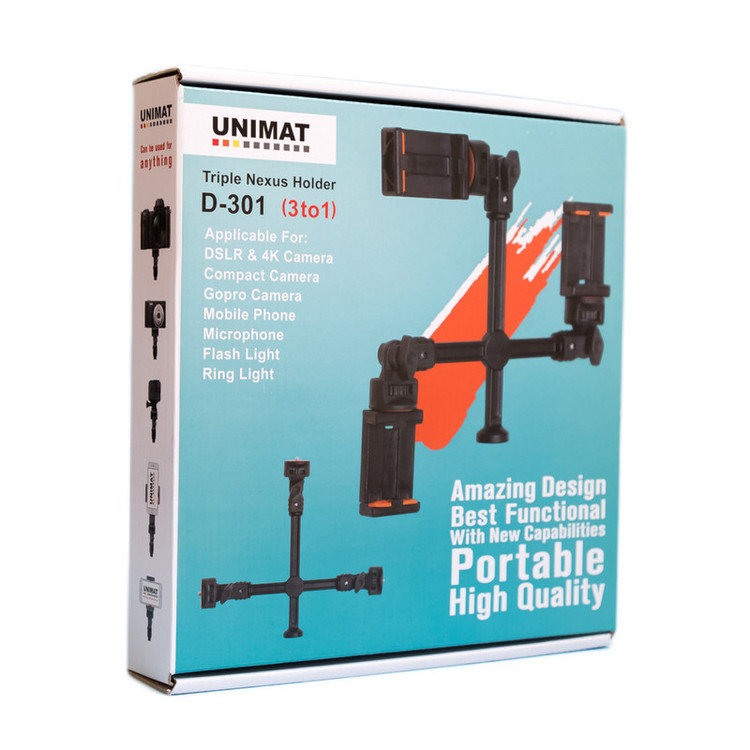 مناسب برای انواع دوربین ها قابلیت اتصال رینگ لایت میکروفون هدبال با قابلیت چرخش 180 درجه قابل نصب بر روی انواع سه پایه و پایه دارای سه عدد هد بال دارای سه عدد گیره نگهدارنده موبایل (دو مهره) دارای سه عدد مانت 360 درجه (ال و پیچ)