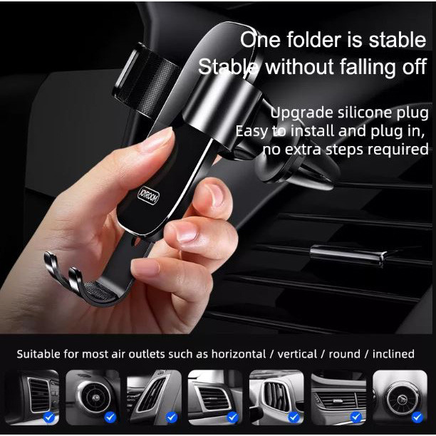 قابل نصب روی دریچه کولر قفل شدن بازوها دور گوشی با کمک نیروی وزن گوشی قابلیت چرخش 360 درجه برای تنظیم زاویه صفحه گوشی