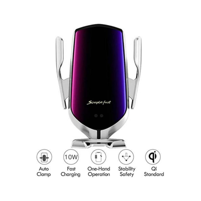 یه شارژر بیسیم خودرو با سنسور هوشمند R2، با طراحی باز و بسته شدن خودکار با یک دست، شارژ تلفن شما را آسانتر و ایمنتر میکند. فقط تلفن خود را در داخل نگهدارنده قرار دهید و بازوها را ببندید تا محکم و پایدار نگه دارید. یک لمس ملایم روی دکمه آزادسازی سریع که در قسمت پشتی بالایی شارژر قرار دارد و بازوها به طور خودکار باز می شوند تا گوشی شما آزاد شود. این طراحی زیبا و ارگونومیک 2 در 1 یک شارژر تلفن بی سیم Qi برای ماشین و یک نگهدارنده تلفن را ترکیب می کند. شارژر و نگهدارنده بیسیم خودرو با گیره خودکار، شارژ کردن گوشی را آسان و ایمن میکند و در حین رانندگی در دسترس نگه میدارد. هنگامی که تلفن شما به طور کامل شارژ می شود، این شارژر تلفن بی سیم برای اتومبیل ها به طور خودکار خاموش می شود تا از باتری گوشی شما محافظت کند. اتصال توپ چرخان قابل تنظیم امکان چرخش کامل 360 درجه را فراهم می کند که به شما امکان مشاهده بهینه تلفن خود را برای GPS و تماس های تلفنی می دهد، به علاوه این راه آسان تر و ایمن تر برای دسترسی به عملکردهای تلفن شما است.