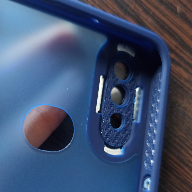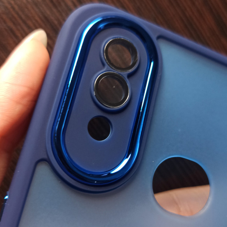 دارای دکمه ی فلزی دارای محافظ لنز شیشه ای روی تعدادی از لنز ها و نه روی همه نیو اسکین پشت مات