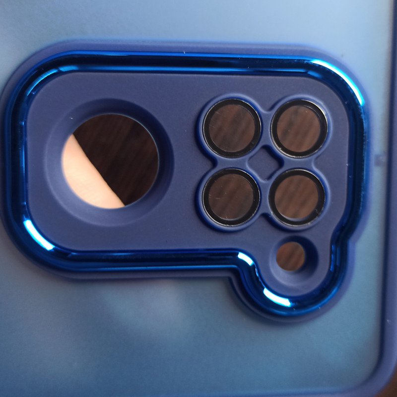 دارای دکمه ی فلزی دارای محافظ لنز شیشه ای روی تعدادی از لنز ها و نه روی همه نیو اسکین پشت مات