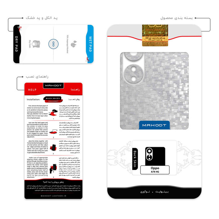 ضخامت 0.2 میلیمتر سری محصول: بافتدار سطح مقاوم در برابر مواد شیمیایی و ساییدگی ضخامت کم چسبندگی بالا امكان استفاده همزمان با گارد و بامپر محتویات جعبه: برپوش ماهوت- پد الکل -راهنما تصویر-کاردک ویژه نصب