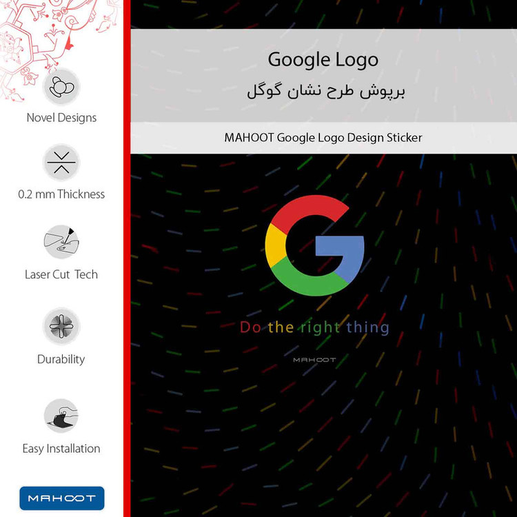 طرح نشان گوگل، محصولِ برند ماهوت میباشد.در توضیح ساختار فنی برپوش طرح میتوان گفت تصویر بر روی لایه اولِ برپوش، مستقیما با یک تکنیک منحصربفرد چاپ میشود. همچنین بخش چسبنده دارای تکنولوژی Bubble Free است که نصب را آسان و چسبندگی را حداکثر میکند و هیچ اثری از چسب، بر روی دستگاه هوشمند باقی نمیگذارد. در لایه دوم یک ورق لمینت گرم، با دستگاههای مخصوص در دمای بالا بر روی لایه اول اعمال می شود تا مقاومت در برابر مواد شیمیایی و خط و خش حداکثر شود. همچنین برپوش طرح به طور کامل در برابر آب مقاوم است. نام دیگر این محصول برپوش است که نوعي استيكر(برچسب) چندلايه است و به منظور پوشش سطح پشت گوشي هوشمند ساخته شده است و كنارههاي دستگاه را پوشش نميدهد. هدف استفاده از آن ايجاد طرح، رنگ و احساسي نو براي دستگاه هوشمند است، در حالي كه زبان طراحي و ظرافت گوشي هوشمند حفظ شود. لازم به ذکر است که برپوش با وجود چسبندگي بالا هيچي اثري از خود هنگام جدا شدن برجاي نميگذارد. همچنین جنس برپوش از پليكربنات است و اين ماده تاثير قابل توجهي بر روي آنتن دهي و يا دفع حرارت گوشي هوشمند نخواهد داشت و اگر دستورالعمل نصب و جدا كردن به شيوه صحيح اجرا شود با توجه به ساختار چندلايه آن ميتوان برپوش را چندين بار استفاده كرد.