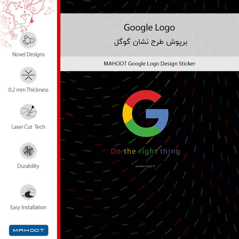 طرح نشان گوگل، محصولِ برند ماهوت میباشد.در توضیح ساختار فنی برپوش طرح میتوان گفت تصویر بر روی لایه اولِ برپوش، مستقیما با یک تکنیک منحصربفرد چاپ میشود. همچنین بخش چسبنده دارای تکنولوژی Bubble Free است که نصب را آسان و چسبندگی را حداکثر میکند و هیچ اثری از چسب، بر روی دستگاه هوشمند باقی نمیگذارد. در لایه دوم یک ورق لمینت گرم، با دستگاههای مخصوص در دمای بالا بر روی لایه اول اعمال می شود تا مقاومت در برابر مواد شیمیایی و خط و خش حداکثر شود. همچنین برپوش طرح به طور کامل در برابر آب مقاوم است. نام دیگر این محصول برپوش است که نوعي استيكر(برچسب) چندلايه است و به منظور پوشش سطح پشت گوشي هوشمند ساخته شده است و كنارههاي دستگاه را پوشش نميدهد. هدف استفاده از آن ايجاد طرح، رنگ و احساسي نو براي دستگاه هوشمند است، در حالي كه زبان طراحي و ظرافت گوشي هوشمند حفظ شود. لازم به ذکر است که برپوش با وجود چسبندگي بالا هيچي اثري از خود هنگام جدا شدن برجاي نميگذارد. همچنین جنس برپوش از پليكربنات است و اين ماده تاثير قابل توجهي بر روي آنتن دهي و يا دفع حرارت گوشي هوشمند نخواهد داشت و اگر دستورالعمل نصب و جدا كردن به شيوه صحيح اجرا شود با توجه به ساختار چندلايه آن ميتوان برپوش را چندين بار استفاده كرد.