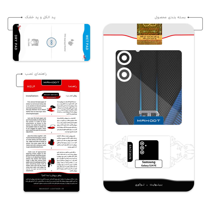 ضخامت 0.2 میلیمتر سری محصول: طرح سطح مقاوم در برابر مواد شیمیایی و ساییدگی ضخامت کم چسبندگی بالا امكان استفاده همزمان با گارد و بامپر محتویات جعبه: برپوش ماهوت- پد الکل -راهنما تصویر-کاردک ویژه نصب