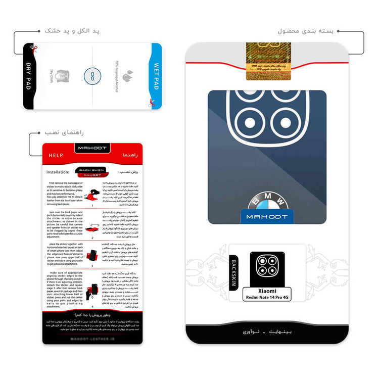 ضخامت 0.2 میلیمتر سری محصول: طرح سطح مقاوم در برابر مواد شیمیایی و ساییدگی ضخامت کم چسبندگی بالا امكان استفاده همزمان با گارد و بامپر محتویات جعبه: برپوش ماهوت- پد الکل -راهنما تصویر-کاردک ویژه نصب