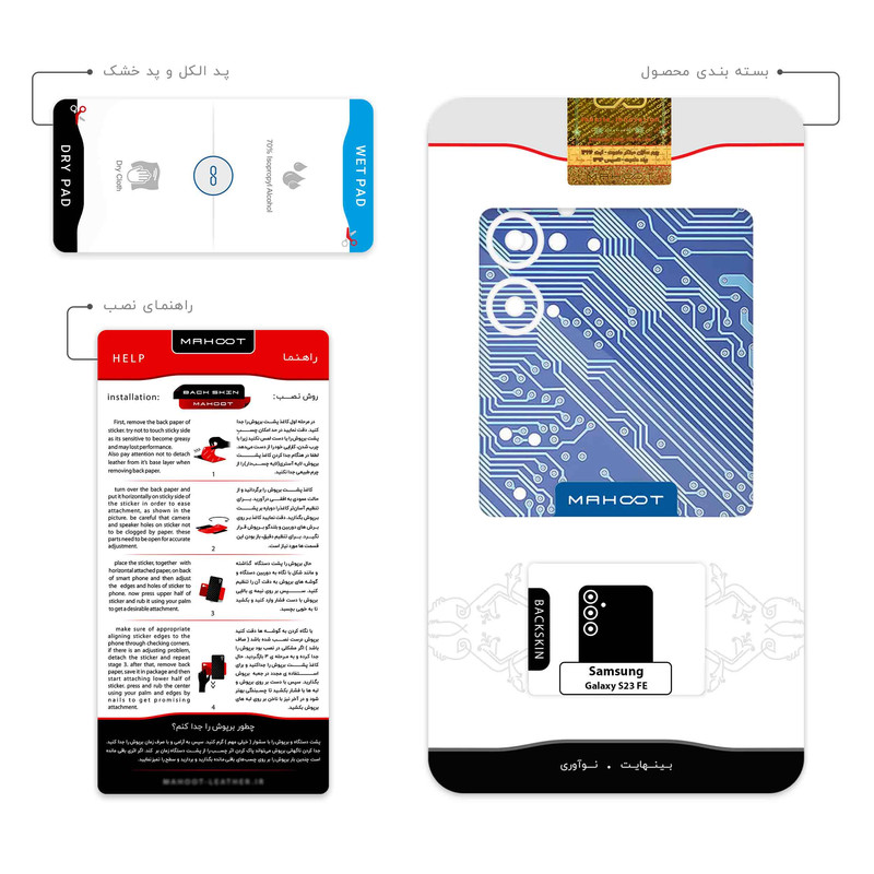 ضخامت 0.2 میلیمتر سری محصول: طرح سطح مقاوم در برابر مواد شیمیایی و ساییدگی ضخامت کم چسبندگی بالا امكان استفاده همزمان با گارد و بامپر محتویات جعبه: برپوش ماهوت- پد الکل -راهنما تصویر-کاردک ویژه نصب