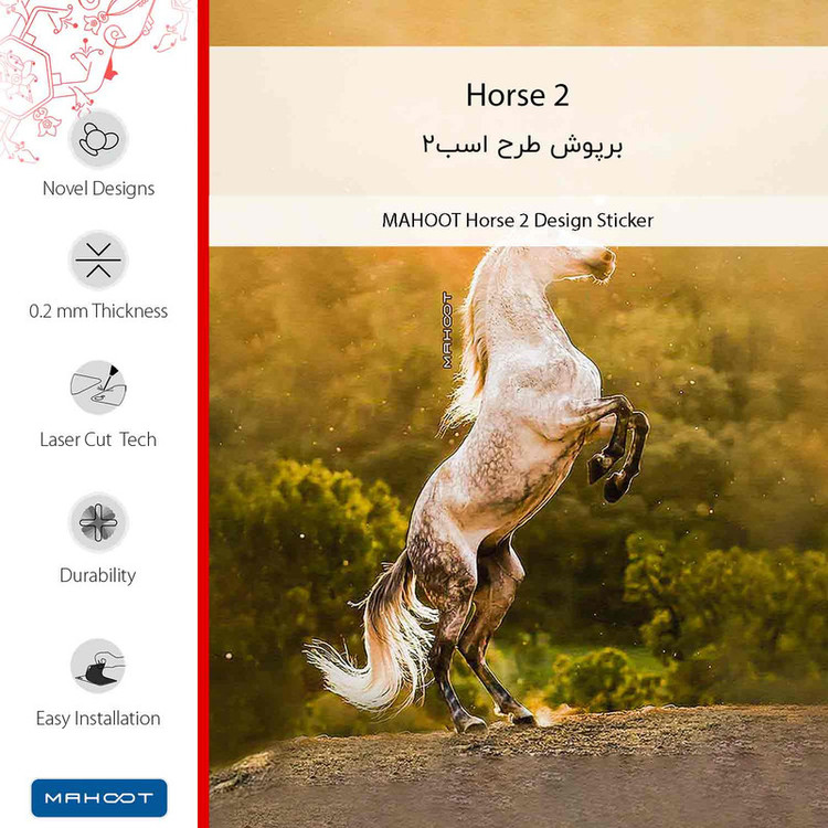 طرح اسب2، محصولِ برند ماهوت میباشد.در توضیح ساختار فنی برپوش طرح میتوان گفت تصویر بر روی لایه اولِ برپوش، مستقیما با یک تکنیک منحصربفرد چاپ میشود. همچنین بخش چسبنده دارای تکنولوژی Bubble Free است که نصب را آسان و چسبندگی را حداکثر میکند و هیچ اثری از چسب، بر روی دستگاه هوشمند باقی نمیگذارد. در لایه دوم یک ورق لمینت گرم، با دستگاههای مخصوص در دمای بالا بر روی لایه اول اعمال می شود تا مقاومت در برابر مواد شیمیایی و خط و خش حداکثر شود. همچنین برپوش طرح به طور کامل در برابر آب مقاوم است. نام دیگر این محصول برپوش است که نوعي استيكر(برچسب) چندلايه است و به منظور پوشش سطح پشت گوشي هوشمند ساخته شده است و كنارههاي دستگاه را پوشش نميدهد. هدف استفاده از آن ايجاد طرح، رنگ و احساسي نو براي دستگاه هوشمند است، در حالي كه زبان طراحي و ظرافت گوشي هوشمند حفظ شود. لازم به ذکر است که برپوش با وجود چسبندگي بالا هيچي اثري از خود هنگام جدا شدن برجاي نميگذارد. همچنین جنس برپوش از پليكربنات است و اين ماده تاثير قابل توجهي بر روي آنتن دهي و يا دفع حرارت گوشي هوشمند نخواهد داشت و اگر دستورالعمل نصب و جدا كردن به شيوه صحيح اجرا شود با توجه به ساختار چندلايه آن ميتوان برپوش را چندين بار استفاده كرد.