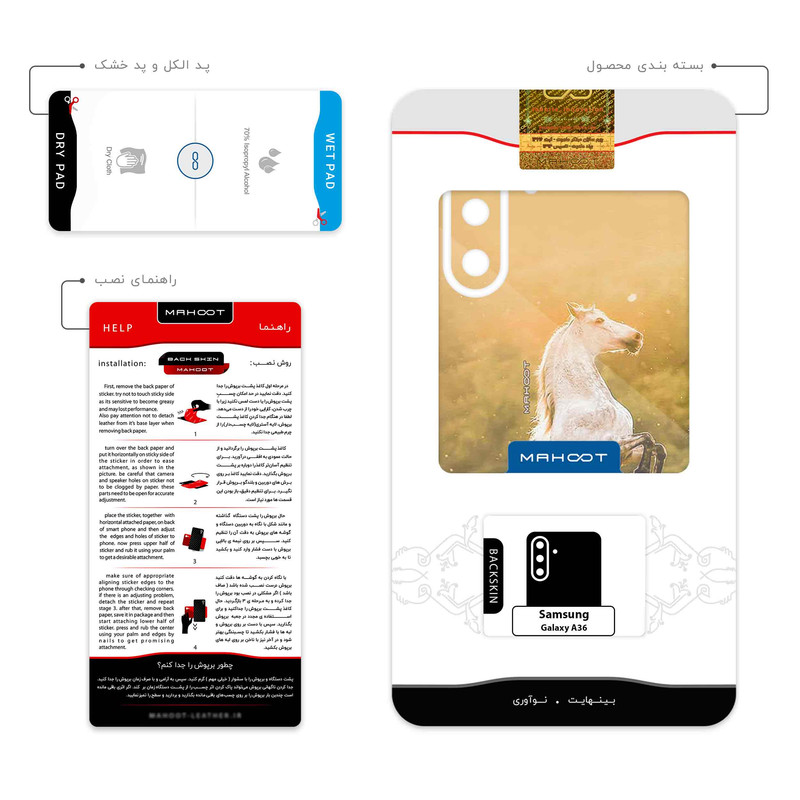 طرح اسب2، محصولِ برند ماهوت میباشد.در توضیح ساختار فنی برپوش طرح میتوان گفت تصویر بر روی لایه اولِ برپوش، مستقیما با یک تکنیک منحصربفرد چاپ میشود. همچنین بخش چسبنده دارای تکنولوژی Bubble Free است که نصب را آسان و چسبندگی را حداکثر میکند و هیچ اثری از چسب، بر روی دستگاه هوشمند باقی نمیگذارد. در لایه دوم یک ورق لمینت گرم، با دستگاههای مخصوص در دمای بالا بر روی لایه اول اعمال می شود تا مقاومت در برابر مواد شیمیایی و خط و خش حداکثر شود. همچنین برپوش طرح به طور کامل در برابر آب مقاوم است. نام دیگر این محصول برپوش است که نوعي استيكر(برچسب) چندلايه است و به منظور پوشش سطح پشت گوشي هوشمند ساخته شده است و كنارههاي دستگاه را پوشش نميدهد. هدف استفاده از آن ايجاد طرح، رنگ و احساسي نو براي دستگاه هوشمند است، در حالي كه زبان طراحي و ظرافت گوشي هوشمند حفظ شود. لازم به ذکر است که برپوش با وجود چسبندگي بالا هيچي اثري از خود هنگام جدا شدن برجاي نميگذارد. همچنین جنس برپوش از پليكربنات است و اين ماده تاثير قابل توجهي بر روي آنتن دهي و يا دفع حرارت گوشي هوشمند نخواهد داشت و اگر دستورالعمل نصب و جدا كردن به شيوه صحيح اجرا شود با توجه به ساختار چندلايه آن ميتوان برپوش را چندين بار استفاده كرد.
