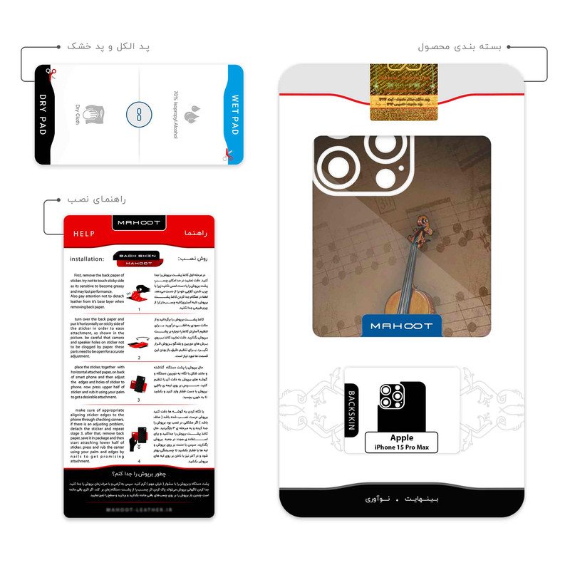 ضخامت 0.2 میلیمتر سری محصول: طرح سطح مقاوم در برابر مواد شیمیایی و ساییدگی ضخامت کم چسبندگی بالا امكان استفاده همزمان با گارد و بامپر محتویات جعبه: برپوش ماهوت- پد الکل -راهنما تصویر-کاردک ویژه نصب