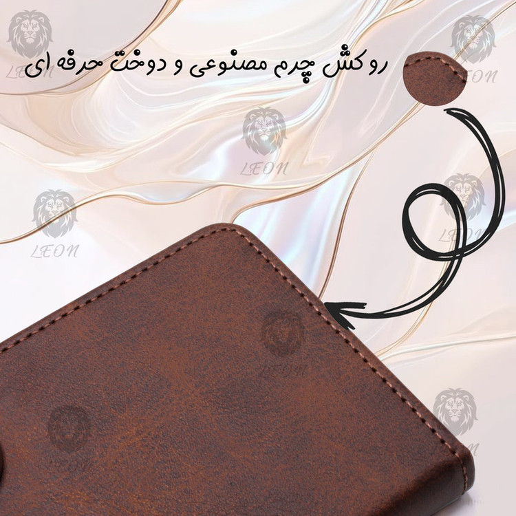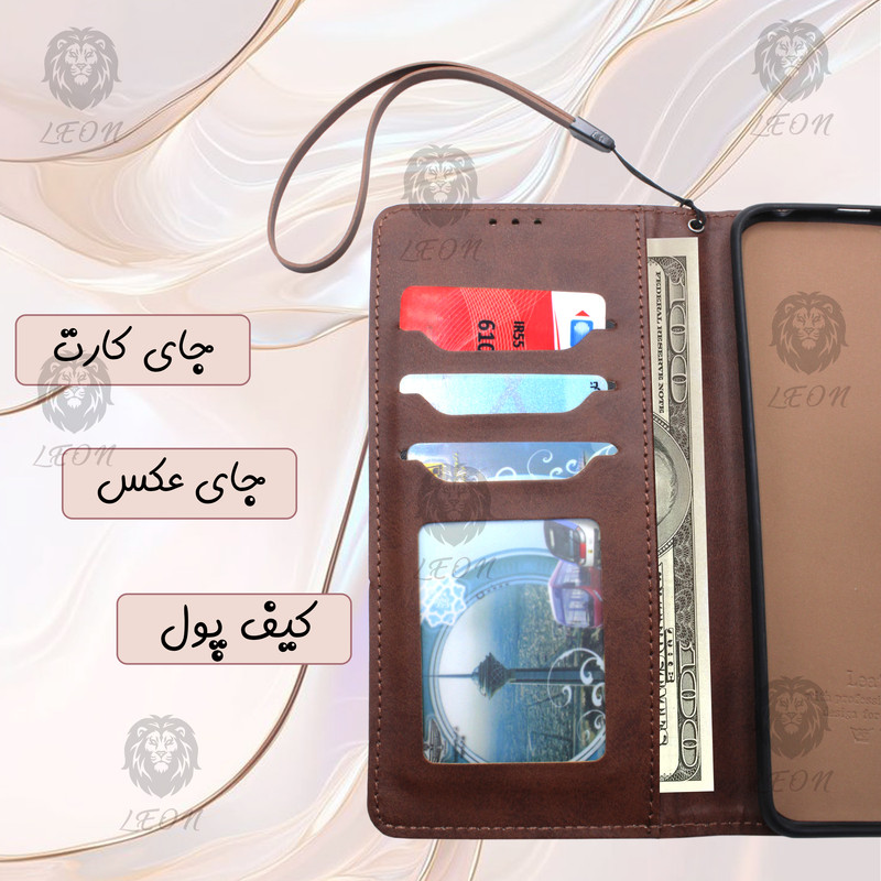قابلیت استفاده به صورت استند دارای جای کارت و وجه نقد چرم مصنوعی با کیفیت کاربردی و مقاوم کیفیت دوخت بالا دارای قفل آهنربایی رنگ بندی متنوع برش دقیق درگاه ها پوشش کامل درگاه ها دارای محافظ لنز
