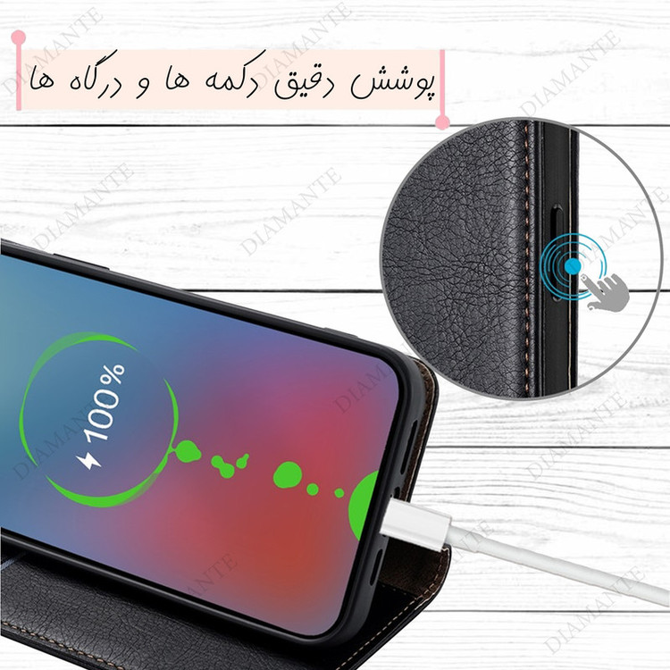 دارای قفل آهنربایی , دارای محفظه نگهداری کارت , قابلیت تبدیل شدن به استند , لبه های برجسته برای محافظت دوربین , لبه های برجسته برای محافظت صفحه نمایش , مقاوم در برابر خط و خش , پشتیبانی از شارژ بیسیم