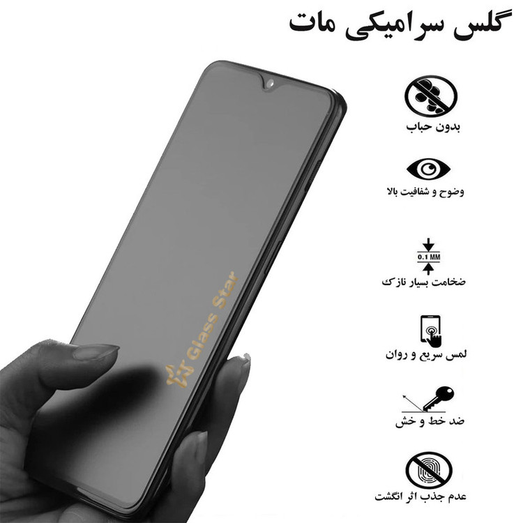 ویژگیها: 9H , جلوگیری از انعکاس نور , قابلیت نصب آسان , مقاوم در برابر چربی و اثرانگشت , مقاوم در برابر خط و خش , نصب بدون حباب