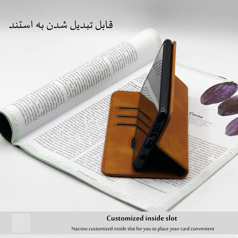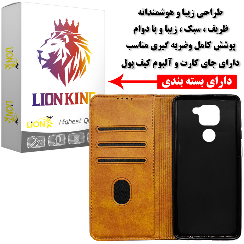 کیف چرمی کلاسوری لاین کینگ ، کاوری شیک و زیبا برای گوشی شیائومی Redmi Note 9است که از چرم مرغوب و باکیفیتی ساخته شده است. این کاور با پوشش کامل پشت، نمایشگر و دور تا دور گوشی به خوبی از آن در برابر آسیب هایی مانند خراشیدگی، ضربات احتمالی، شوک و گرد و غبار محافظت می کند.گوشی شما به راحتی درون این کیف قرار می گیرد و نیاز به دقت خاصی برای نصب آن روی گوشی وجود ندارد. قاب داخلی کیف، جنسی نرم و منعطف دارد که باعث می شود تا گوشی به راحتی درون آن قرار بگیرد. این قاب تمام بدنه گوشی، اعم از گوشه ها و لبه های رویی نمایشگر و دورتادور آن رامی پوشاند. در نهایت لایه چرمی یکدستی پشت قاب و روی نمایشگر را پوشش می دهد.ارتفاع میان قاب و لنز دوربین پشت گوشی باعث می شود تا هنگامی که گوشی را روی میز یا سطوح صاف قرار می دهید، لنز آن دچار خراشیدگی نشود.محل پورتها و دوربین به دقت روی کاور برش خورده اند و محدودیتی هنگام شارژ یا اتصال کابل هندزفری نخواهید داشت. روی دکمه ها نیز توسط قاب ژله ای داخلی پوشانده شده است که این ویژگی باعث عدم آلودگی آنها می شود. البته لمس دکمه ها، پاسخگویی خوبی دارد.داخل درب کیف ، یک جیب وجود دارد که برای نگهداری کارت اعتباری به کار می رود. در صورت دلخواه می توانید با استفاده از درب کیف، گوشی را به گونه ای روی میز قرار دهید که بتوانید به راحتی به تماشای فیلم و یا موزیک ویدئو بپردازید.