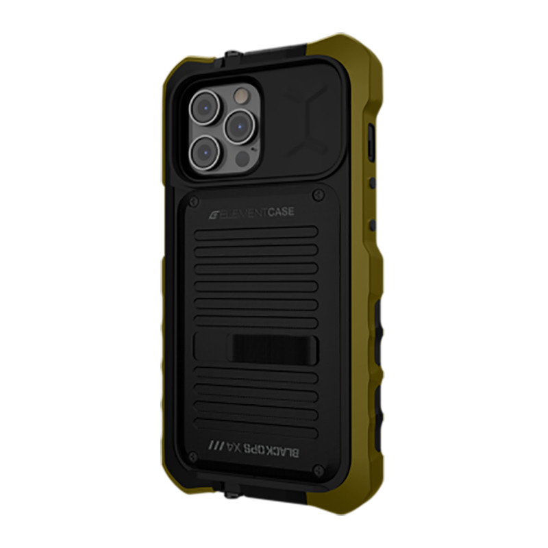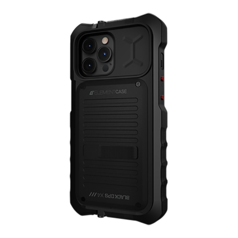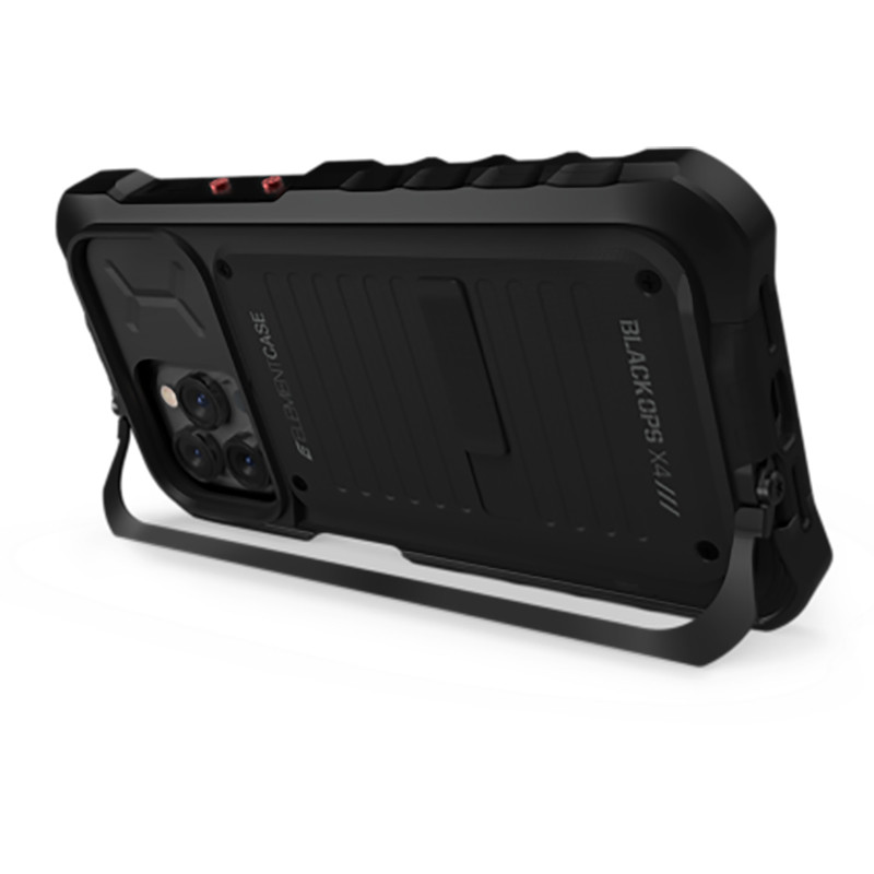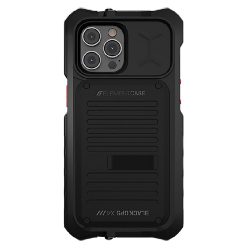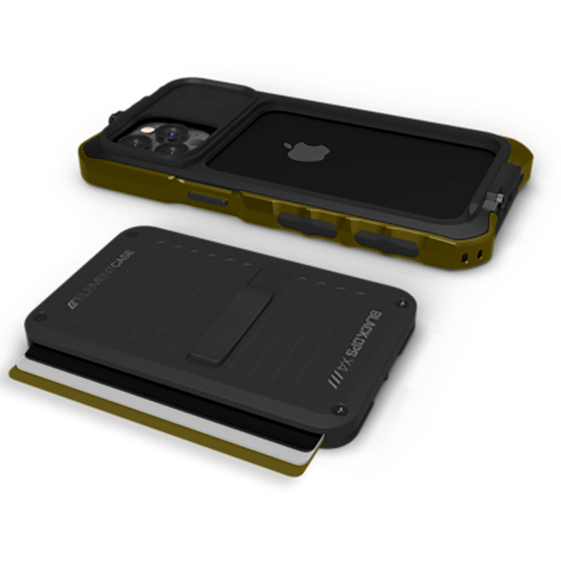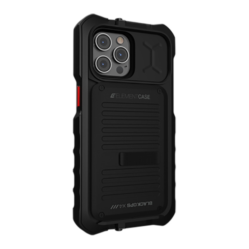 نسل جدید قابهای المنت کیس سری Black Ops با طراحی متفاوت و خصوصیات جدید یکی دیگر از کاورهای معرفی شده این برند می باشد که مناسب گوشی های اپل iPhone 13 pro است. این قاب از بهترین مواد و با برش دستگاه CNC تولید شده است. طراحی منحصر به فرد جذب سه لایه (آلومینیوم ، پلی کربنات ، TPU) باعث می شود تا در برابر ضربه شدید مقاومت کند. دکمه های آلومینیومی تراش خورده توسط دستگاه CNC در عین محافظت از دکمه های گوشی استفاده از آن را آسان و سریع کرده است. این قاب دارای پایه ای است که برای استفاده از گوشی در حالت افقی به آن زاویه 35 درجه می دهد. در پشت قاب گوشی یک قاب برای گذاشتن کارت وجود دارد که قابل برداشتن است.در زمان استفاده از اين کاور، قاب پشتي و لبههاي گوشي موبايل به طور کامل پوشانده خواهند شد. اين پوشش باعث ميشود دستگاه در برابر خطوخش محافظت شده و در ضربهها آسيب کمتري به آن وارد کنند.اين کيس با استانداردهاي نظامي سقوط تست شده و در برابر سقوط از ارتفاع داراي مقاومت بالايي مي باشد. متريال استفاده شده در اين کاور به نوعي مي باشد که در عين ايجاد مقاومت بالا داراي وزن بسيار کمي مي باشد.