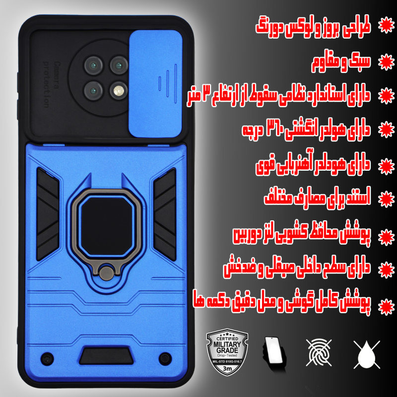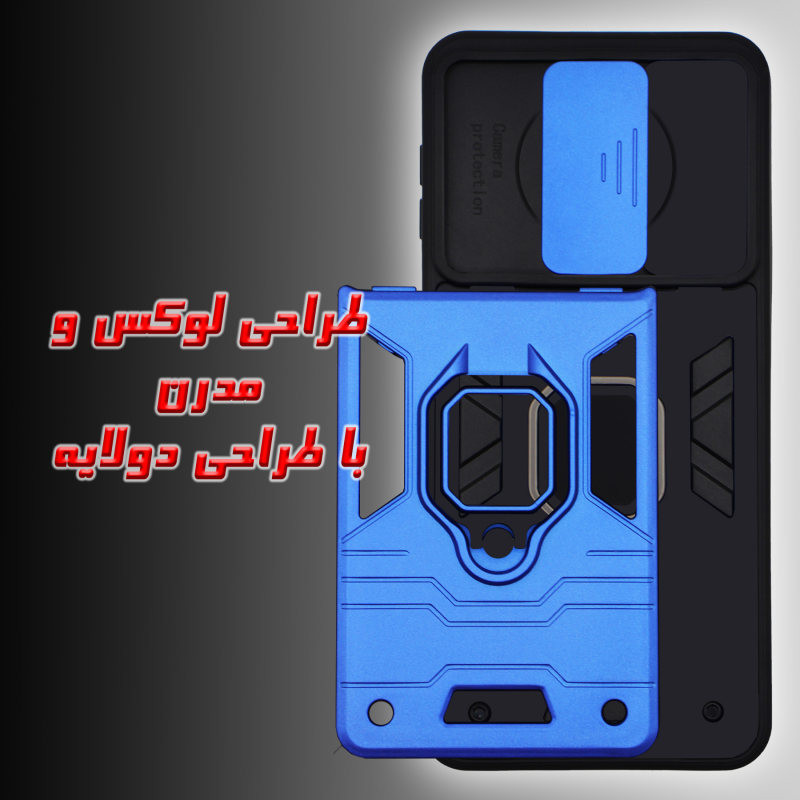 سری قابهای پرشین کینگ مدل RTS22 ویژه افرادی با روحیه هیجانی و پر از شور و شعف طراحی شده است. قاب محافظ پرشین کینگ مدل RTS22 از مواد PU و TPU تولیده شدهاند. این نوع پلاستیک به دلیل دوام بسیار خوبی که دارد برای ساخت قطعات داخلی اتومبیل مورد استفاده قرار میگیرد. مواد پلاستیک PU و TPU به کار رفته در تولید این محافظها را به صورت دو لایه به کار گرفته است. در نتیجه این قابها، نسبت به سایر قابهای محافظ در برابر ضربه، خط و خش، سایش و سایر آسیبهای معمول که به گوشی هوشمند شما وارد میشود، از ظاهر خاص این قابها که بگذریم باید گفت با طراحی استاندارد این محافظان گوشی، محل قرارگیری دوربین، سنسور و سایر پورتهای گوشی باز است و کاربران برای کار با این امکانات گوشی مشکلی نخواهند داشت. اما برای افزایش حس خشن این قاب روی کلیدهای گوشی با پوسته نازکی به صورت برجسته پوشیده شده است تا کاربران برای لمس کلیدها و کار با آنها مشکلی نداشته باشند.یکی از مهمترین ویژگی های این قاب وجود حلقه نگهدارنده در پشت قاب است که شما میتوانید از حلقه ای که به این قاب متصل است در موارد گوناگون استفاده کنید. برای نمونه: با قرار دادن انگشت دورن حلقه، گوشی کاملا در دست محکم می شود و احتمال افتادن گوشی از دست از بین میبرد. یا میتوانید با چرخاندن حلقه کاور را به حالت استند در بیاورید و به تماشای فیلم بپردازید. همچنین این حلقه نگهدارنده باداشتن حالت آهن ربایی می تواند به خوبی روی هولدرهای آهنربایی داخل خودرو بچسبد و دیگر نیازی به استفاده از برچسبهای آهن ربایی مجزا نخواهید داشت. همچنین دیگر نباید نگران به جای ماندن اثر انگشت بر روی قاب گوشی خود نباشید چرا که اثر انگشت بر روی این قاب نمیماند.