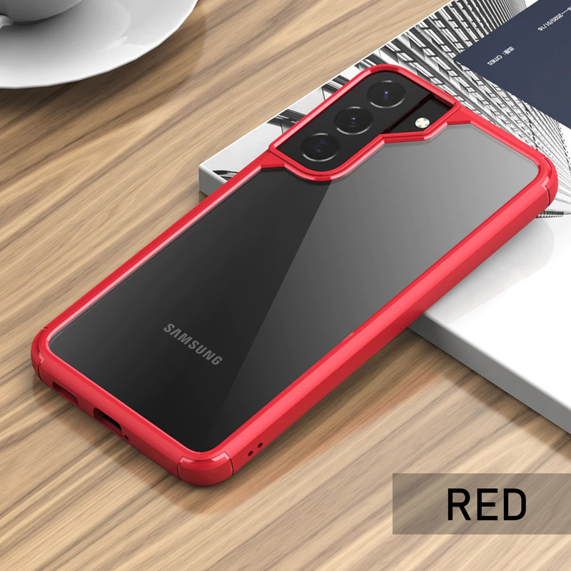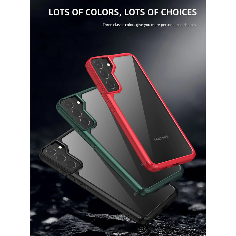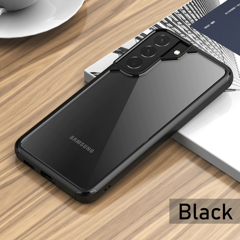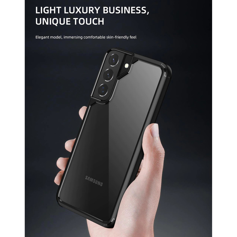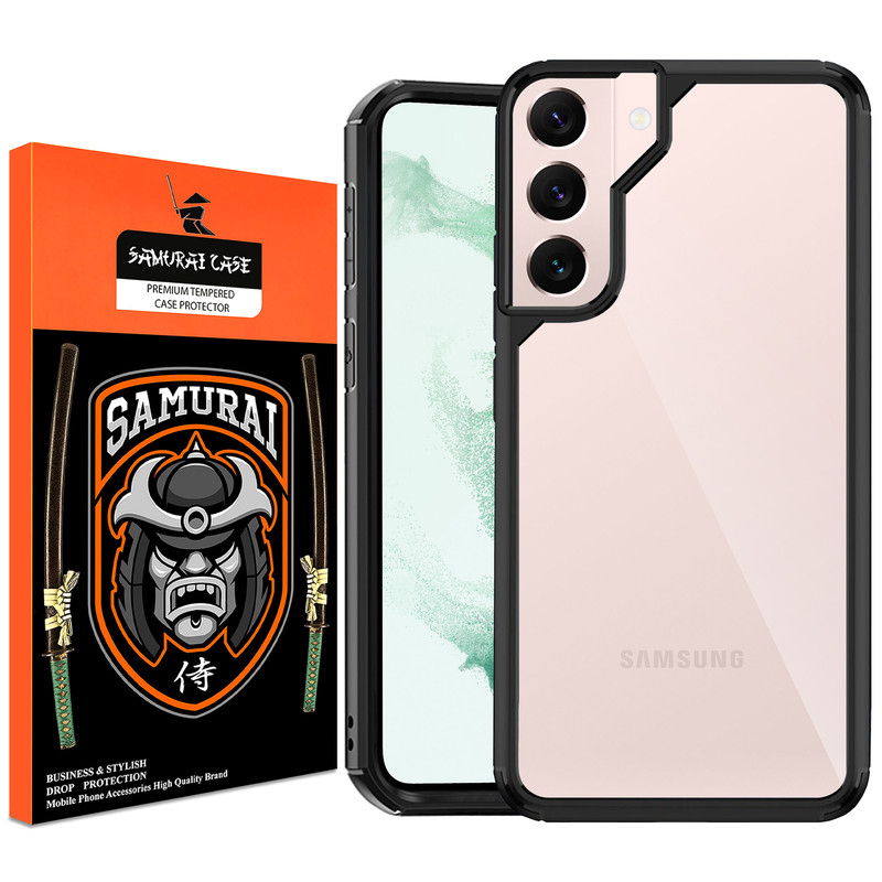 کاور گوشی سامسونگ Galaxy S22 سری Shock Proof Case محافظی ساده است که به دور از هر گونه زرق و برق از گوشی شما در برابر ضربه و سقوط به خوبی محافظت می کند. روکش قاب کاملا صاف و یکدست بوده و احساس خوشایندی به کاربر در هنگام کار با گوشی منتقل میکند. سطح و جنس کاور از پلاستیک با کیفیت و نسبتا نرمی ساخته شده است که به راحتی گوشی درون کاور جای گرفته و هنگام کار محدودیتی برای کار با دوربین، پورت ها و دکمه ها نخواهید داشت. ساختار این قاب از دو بخش به هم پیوند خورده تشکیل شده است. بخش اول بدنه ی اصلی قاب است که با نمای شفاف خود پشت گوشی را می پوشاند و از گوشی شما در برابر خط و خش و ضربات احتمالی حفاظت میکند. بخش دوم بامپری است که با ایجاد لایه ای ضخیم تر، دورتادور گوشی را پوشانده و آن را در برابر سقوط و ضربه های شدید ایمن نگه می دارد.
