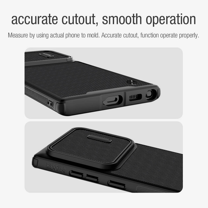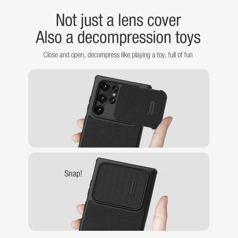 ساخت با استفاده از تکنولوژی پیشرفته، باعث شده تا قاب از برشهای دقیق برخوردار باشد، این ظرافت ساخت، دسترسی راحت به دکمهها، پورت گوشی و ... را بدون نیاز به جدا کردن قاب فراهم میکند،در قاب نیلکین گوشی سامسونگ Samsung S22 Ultra مدل Textured S از کاور کشویی روی لنزها استفاده شده که مانع آسیب دیدن آنها میشود و همزمان حریم خصوصتان را حفظ میکند، برای راحتی بیشترتان این قسمت بصورت نیمه اتوماتیک باز و بسته میشود،نگران برخورد ضربه و افتادن موبایلتان نباشید، در ساخت قاب از پلاستیک PC سخت و TPU نرم استفاده شده که ترکیب این دو متریال به خوبی در برابر ضربههایی حتی با شدت بالا هم دوام میآورد،فرآیند ساخت قاب با استفاده از فولاد کربن بالا و قالب گیری تحت فشار و دمای بالا بوده است، به همین علت، قاب از خاصیت ارتجاعی خوبی برخوردار است که باعث افزایش دوام آن تا مدتها میشود،سطح قاب نیلکین اس 22 اولترا به شکلی طراحی شده که هرگز از دستتان لیز نمیخورد،دو طرف قاب هم با افزایش اصطحکاک مانع لغزش آن میشوند،علاوه بر این قاب در تماس با اشیای نوک تیز هم هیچ آسیبی نمیبیند،این قاب فوقالعاده خوش دست و نازک طراحی شده تا ظاهر ظریف گوشی حفظ شود و حمل آن راحت باشد،همچنین ضخامت کم آن هیچ مانعی برای شارژ بیسیم گوشی ایجاد نخواهد کرد.