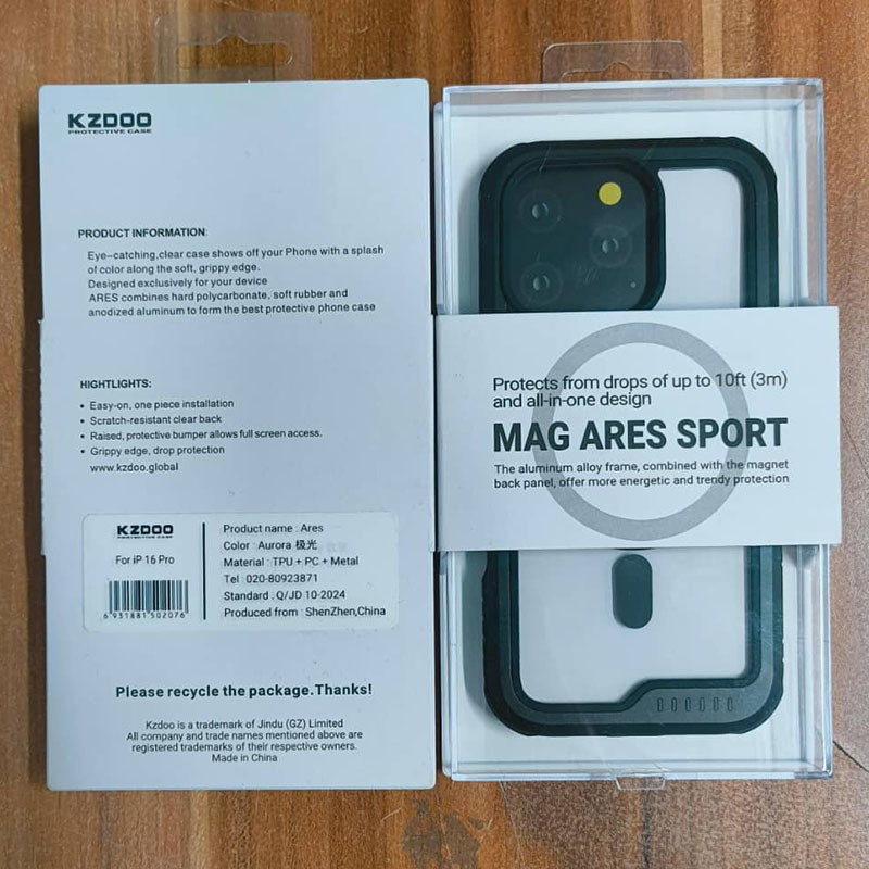 این قاب نسخه ی جدیدی از مدل پرطرفدار Aresاست که از لحاظ طراحی و امنیت قاب بهبود یافته است و طرحی اسپورت و بروزتر برای سلیقه های بروز تر ساخته شده. این قاب برای کسانی که دوست ندارند با گذاشتن قاب رنگ گوشی را بپوشانند ایدهآل است زیرا پشت آن کاملا شفاف است.با خرید کاور کی-زد دوو مدل Mag Ares Sport میتوانید گوشی خود را به سادهترین و راحتترین روش شارژ کنید،زیرا خاصیت مغناطیسی دارد و شارژر وایرلس به آن میچسبد.این قاب زیبایی گوشی شما را نخواهد پوشاند. محافظت خیلی خوبی هم از گوشی شما به عمل میآورد و میتوانید با آن تجربهی لذت بخشی از کار با گوشی خود داشته باشید.مهمترین ویژگی کاور کی-زد دوو مدلMag Ares Sport پشتیبانی آن از Magsafe است که یعنی خاصیت آهنربایی دارد.بنابراین میتوانید خیلی راحت شارژر بی سیم را به آن بچسبانید تا گوشی شروع به شارژ شدن کند.دیگر مجبور نیستید برای شارژ وایرلس قاب را دربیاورید.در عین حال نسبت به سایر قاب ها برتریهای بسیاری دارد: امنیت گوشی را تضمین میکند و جلوی هرگونه آسیبی را به بدنهی حساس گوشی میگیرد.با خرید این قاب به بهترین نحو از گوشی خود مراقبت میکنید و در عین حال ظاهری فوقالعاده هم به آن هدیه خواهید کرد.در قاب Mag Ares Sport دور تا دور از آلیاژ آلومینیوم ماشینکاری شده استفاده شده است.این متریال درجه حافظتی این قاب را تا گرید نظامی بالا برده است.در حدی که حتی با سقوط از ارتفاعی در حدود سه متر هم میتواند گوشی را در امان نگه دارد.پشت قاب از جنس پلی کربنات شفاف است.در عین این که محکم است و از ایجاد خط و خش روی بدنه جلوگیری میکند،رنگ اصلی گوشی را نمیپوشاند و لوگوی آن را کاملا نمایان میکند.رنگ قسمت فلزی دور قاب دارای تنوع است و میتوانید یکی از آن ها را انتخاب کنید.برای مثال میتوانید رنگی را انتخاب کنید که با رنگ گوشیتان هماهنگی داشته باشد،در این صورت ظاهر بسیار زیبایی به آن خواهید داد.کاورMag Aresدور تا دور لنز دوربین را هم میپوشاند و با آن اختلاف سطحی در حدود 2 میلی متر ایجاد میکند.بنابراین جلوی ایجاد خط و خش و آسیب روی لنز را میگیرد.این اتفاق در مورد صفحهی گوشی هم صادق است،یعنی در حدود 5 میلی متر برامدگی دارد که یک محافظت حدودی از نمایشگر به عمل میآورد.میتوانید تا مدتهای طولانی بدون هر مشکلی از این قاب استفاده کنید.