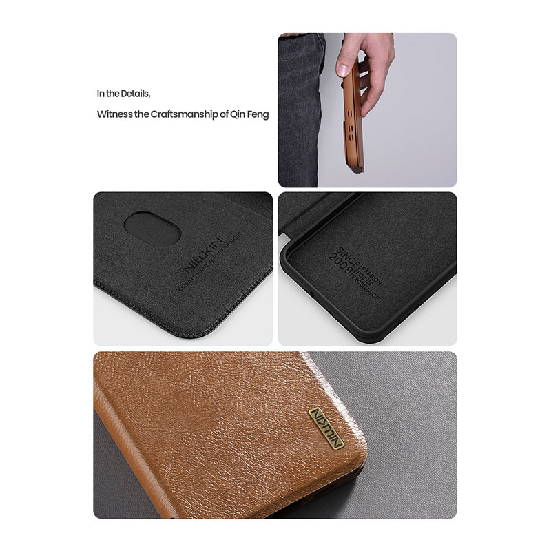 طراحی کیف شبیه به یک اثر هنری برجسته است. با لمس چرم لطیف کیف، حس فوقالعادهای را تجربه میکنید. با وجود دو لایه بسیار نازک و سبک است. برای همین هیچ سنگینی و بار اضافی به گوشی اضافه نمیکند.طراحی شیک و فوقالعادهی کیف، توجه همه را جلب میکند.اگر قصد خرید لوازم جانبی گوشی موبایل را دارید، کیف کلاسوری نیلکین مدل Qin Pro Leather Caseبا درجهی محافظت بالا بهترین انتخاب است.کیف کلاسوری نیلکین مدل Qin Pro Leather Case به صورت همه جانبهای از گوشی گران قیمتتان محافظت میکند. نه تنها بدنهی گوشی، بلکه ال سی دی، لنز دوربین و سایر نقاط حساس هم دارای پوشش هستند.کیف کلاسوری نیلکین مدل Qin Pro Leather Case دارای دو لایه است. زیر روکش چرم مصنوعی از پلاستیک PC استفاده شده است.پلاستیک PC مقاومت خوبی دارد.سختی بالای آن مانع تاثیر ضربه بر بدنهی گوشی میشود.در نتیجه ایمنی گوشی را در برابر افتادن و ضربه تضمین میکند.امکان ندارد با وجود کیف، گوشی از دستتان لیز بخورد. حتی اگر دستتان خیس باشد. چون این چرم مصنوعی خاصیت ضد لغزش دارد.کیف کلاسوری نیلکین مدل Qin Pro Leather Case کیفیت بالایی دارد. بسیار ظریف و در عین حال بادوام ساخته شده است و این ظرافت و زیبایی در طراحی استایلی جذاب و دلربا به شما میبخشد.چرمها لطافت و نرمی متفاوتی دارند.در مقابل بافت داخلی آنها بسیار محکم است. ترکیب این دو خاصیت،کیف کلاسوری نیلکین مدل Qin Pro Leather Case در برابر خط و خش بیمه میکند.با کوچکترین فشاری میتوانید کیف کلاسوری نیلکین مدل Qin Pro Leather Case را روی گوشی نصب کنید. نصب راحتی دارد. به خوبی با بدنه چفت میشود و گوشی داخل کیف تکان نمیخورد.روی این کیف براق چرمی اثر انگشت و لکه نمیبینید. به علاوه نیلیکن با برش دقیق مانع نفوذ ذرات ریز گردوغبار به بدنهی گوشی میشود.محافظ لنز دوربین یکی از مهمترین ویژگیهای این قاب است. با کشیدن محافظ روی لنز، ضربه یا خراش به آن آسیب نمیزند.از تکنولوژیهای مدرن روز و همچنین بهترین متریالها در ساخت آن استفاده شده است. وقتی آن را لمس میکنید به کیفیت بالای جنس آن پی میبرید.کیف کلاسوری نیلکین مدل Qin Pro Leather Case طراحی دقیقی دارد. به زیبایی هر چه تمامتر برش خورده است و برای استفاده از قابلیتها و امکانات گوشیتان به مشکل نخواهید خورد.
