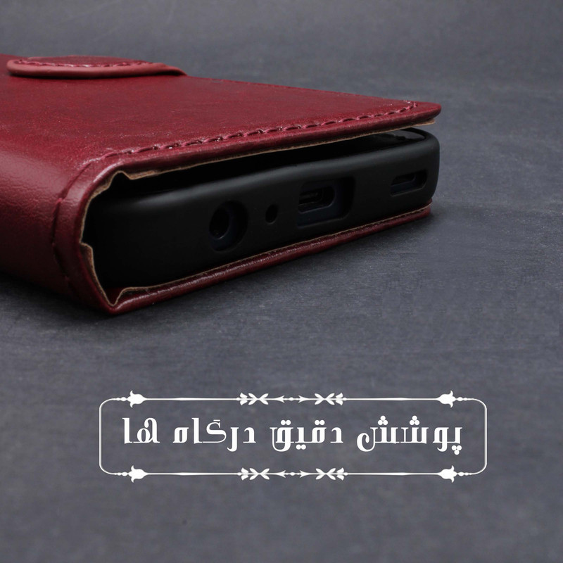 ویژگیهای کیف و کاور : لبه های برجسته برای محافظت صفحه نمایش , لبه های برجسته برای محافظت دوربین , مقاوم در برابر خط و خش , پشتیبانی از شارژ بیسیم , قابلیت تبدیل شدن به استند , دارای محفظه نگهداری کارت , دارای قفل آهنربایی