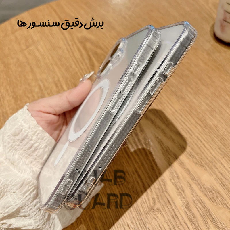 کاور قاب گارد مدل SFMG یکی از پرطرفدارترین و کاربردی ترین قاب ها به شمار می رود. این قاب امکان دسترسی بهتر به همه پورت ها را فراهم می کند و از شارژ بی سیم پشتیبانی می کند. این محصول به لطف آهنرباهای یکپارچه که کاملاً با سیستم گوشی موبایل شما هماهنگ است باعث می شود از شارژر های مگ سیف و پاوربانک های وایرلس پشتیبانی کند.طراحی شفاف این قاب سبب شده ظاهر اصلی گوشی حفظ شود و تنها در برابر صدمات احتمالی و خط و خش از گوشی شما محافظت شود.