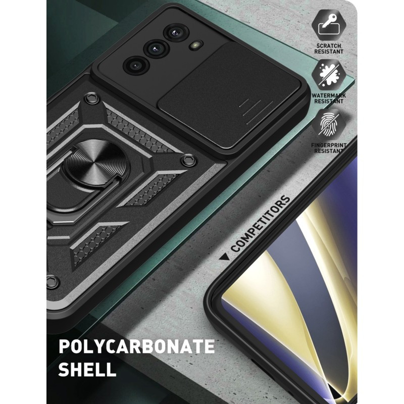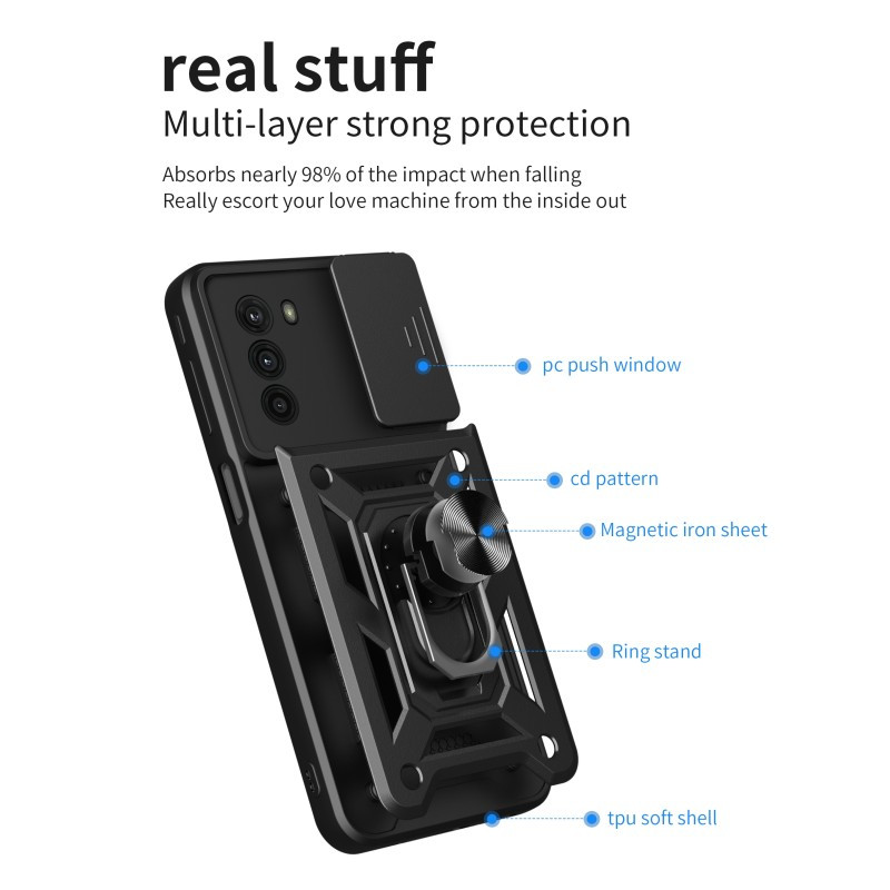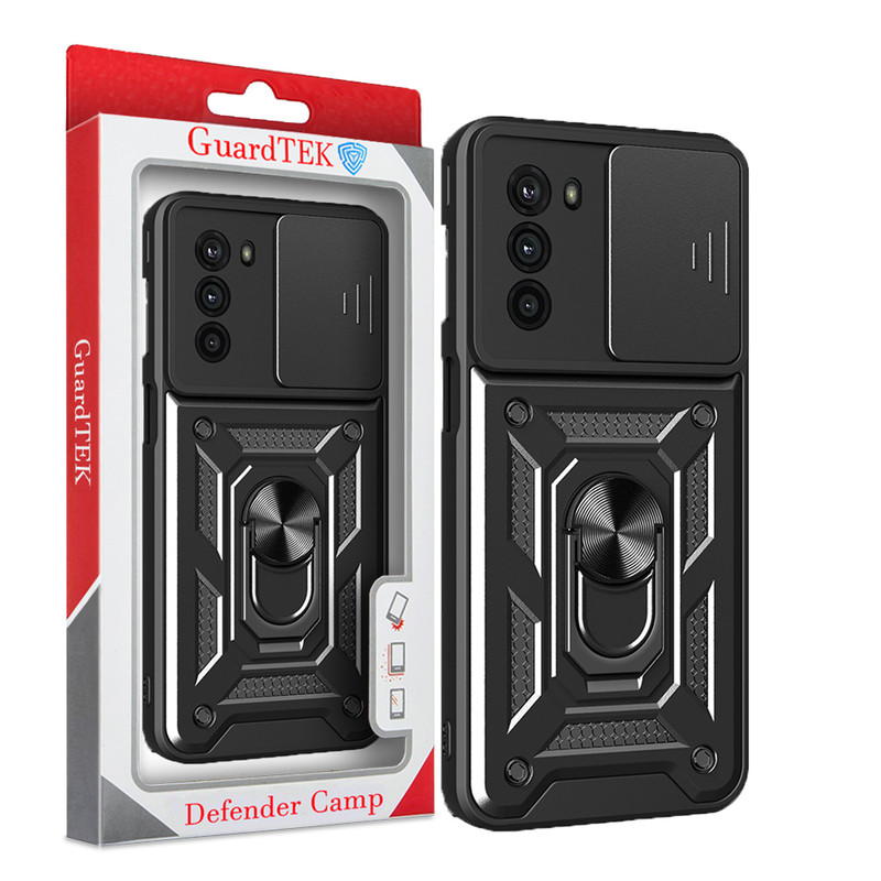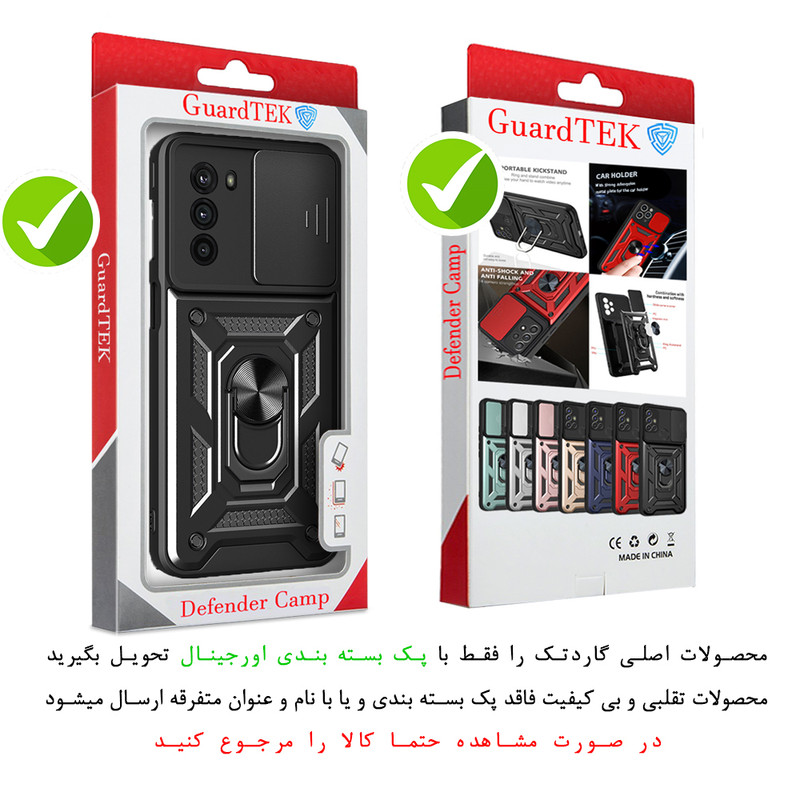 سری قابهای گارد تک مدل Dcamp2 ویژه افرادی با روحیه هیجانی و پر از شور و شعف طراحی شده است. قاب محافظ گارد تک مدل Dcamp2 از مواد PU و TPU تولیده شدهاند. این نوع پلاستیک به دلیل دوام بسیار خوبی که دارد برای ساخت قطعات داخلی اتومبیل مورد استفاده قرار میگیرد. مواد پلاستیک PU و TPU به کار رفته در تولید این محافظها را به صورت دو لایه به کار گرفته است. در نتیجه این قابها، نسبت به سایر قابهای محافظ در برابر ضربه، خط و خش، سایش و سایر آسیبهای معمول که به گوشی ریلمی C21Y وارد میشود، ز ظاهر خاص این قابها که بگذریم باید گفت با طراحی استاندارد این محافظان گوشی، محل قرارگیری دوربین، سنسور و سایر پورتهای گوشی باز است و کاربران برای کار با این امکانات گوشی مشکلی نخواهند داشت. اما برای افزایش حس خشن این قاب روی کلیدهای گوشی با پوسته نازکی به صورت برجسته پوشیده شده است تا کاربران برای لمس کلیدها و کار با آنها مشکلی نداشته باشند.یکی از مهمترین ویژگی های این قاب وجود حلقه نگهدارنده در پشت قاب است که شما میتوانید از حلقه ای که به این قاب متصل است در موارد گوناگون استفاده کنید. برای نمونه: با قرار دادن انگشت دورن حلقه، گوشی کاملا در دست محکم می شود و احتمال افتادن گوشی از دست از بین میبرد. یا میتوانید با چرخاندن حلقه کاور را به حالت استند در بیاورید و به تماشای فیلم بپردازید. همچنین این حلقه نگهدارنده باداشتن حالت آهن ربایی می تواند به خوبی روی هولدرهای آهنربایی داخل خودرو بچسبد و دیگر نیازی به استفاده از برچسبهای آهن ربایی مجزا نخواهید داشت. همچنین دیگر نباید نگران به جای ماندن اثر انگشت بر روی قاب گوشی خود نباشید چرا که اثر انگشت بر روی این قاب نمیماند.